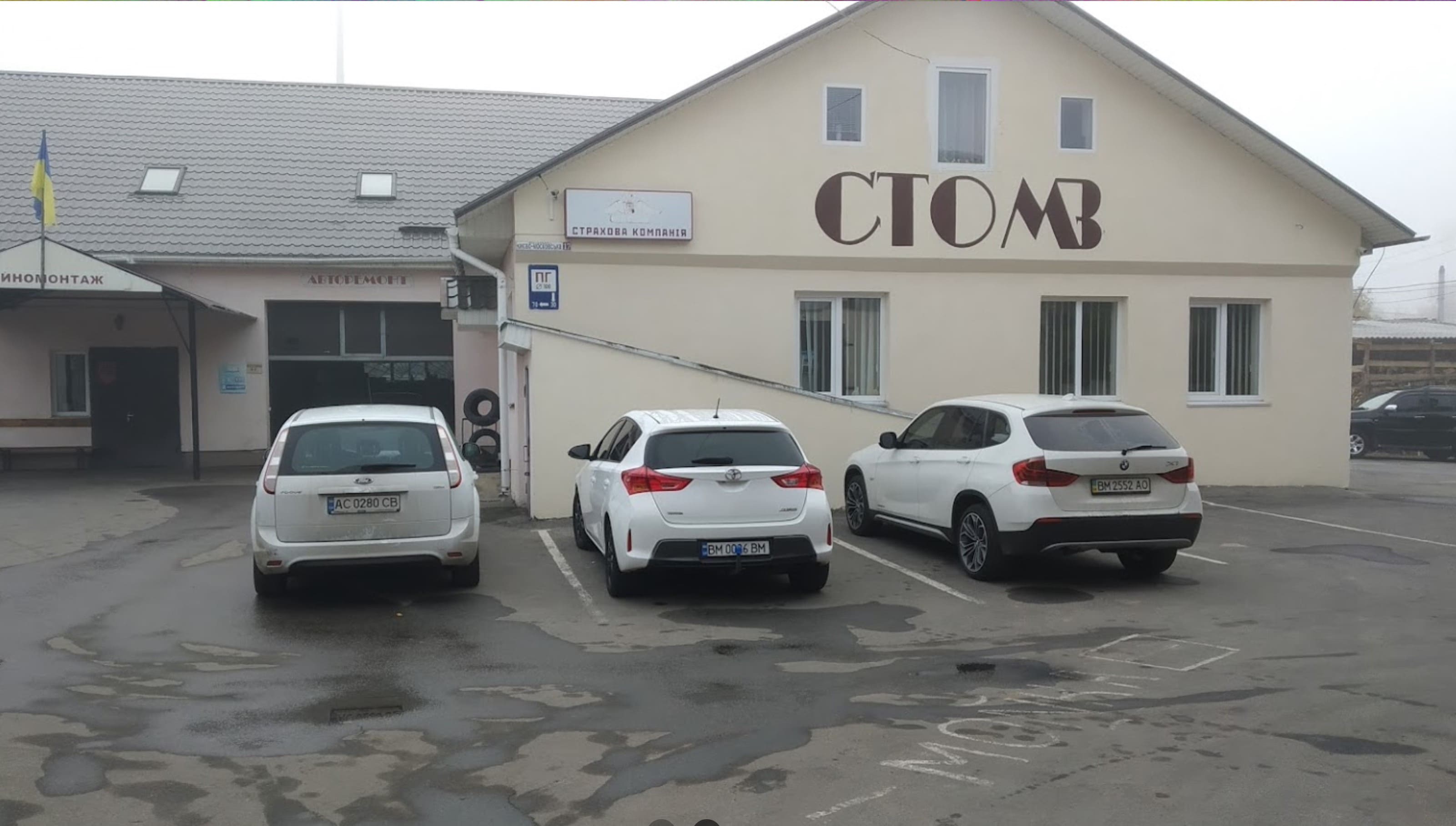 В этом здании находится небольшая автомастерская под названием СТО МВ. До удара здание выглядело так: