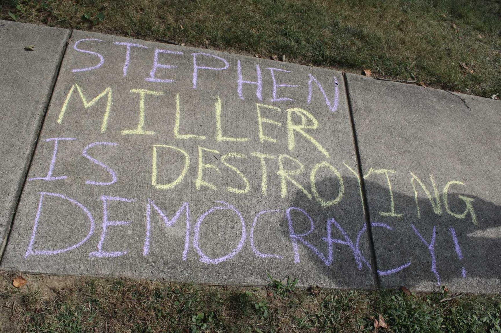 Арлингтонское местное издание ARLnow сообщает: Стивен Миллер действительно выставил свой дом на продажу и переехал на военную базу после написанного кем-то лозунга, выражающего протест против его политики. Вот только угроза ему выглядела совсем не так драматично, как ее описывает Киселев. На самом деле на парковой дорожке около его дома кто-то написал мелом: «Стивен Миллер разрушает демократию!».