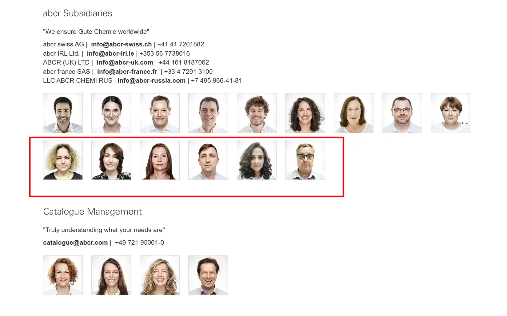 Up until March 17, the German company’s website indicated that its Russian division was part of its team and included photographs of employees of ABCR Chemi Rus LLC. After an inquiry and a phone call from The Insider to Germany, the website suddenly stopped working, and a few days later all references to Russian employees disappeared from it.