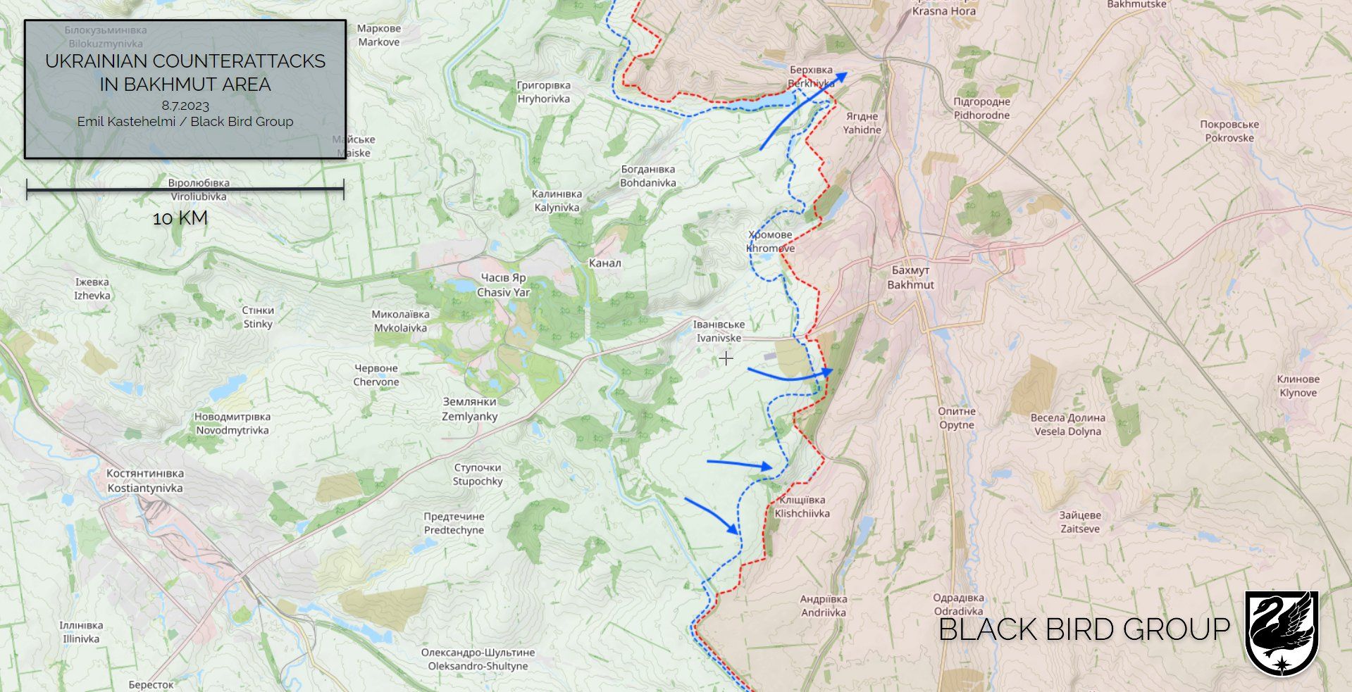 OSINT analysts also noted the AFU’s successes in the Bakhmut direction. According to Finnish researcher Emil Kastehelmi of the Black Bird Group, there were fortified positions on the heights near Klischiivka that held back the Ukrainian offensive for several days, but now this obstacle has probably been overcome.