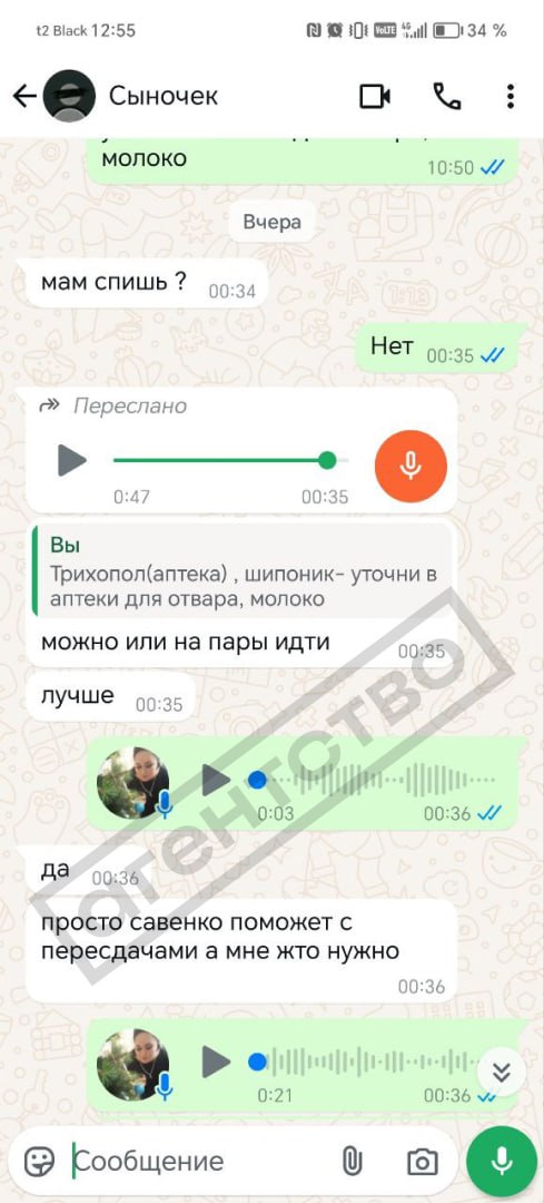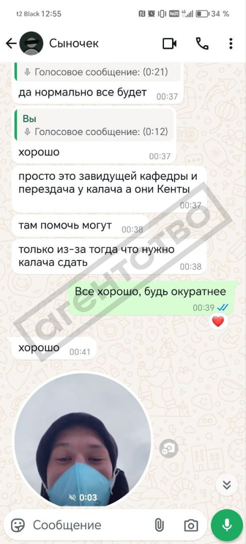 She also provided Agentstvo with screenshots of her last conversations with her son. In one message, he wrote: “Savenko will help with exam retakes, and I need that…” Another screenshot shows Komin wearing a protective mask and gown while working. The video was sent at 10:28 a.m. At 2:26 p.m., he messaged again: “Still here.”