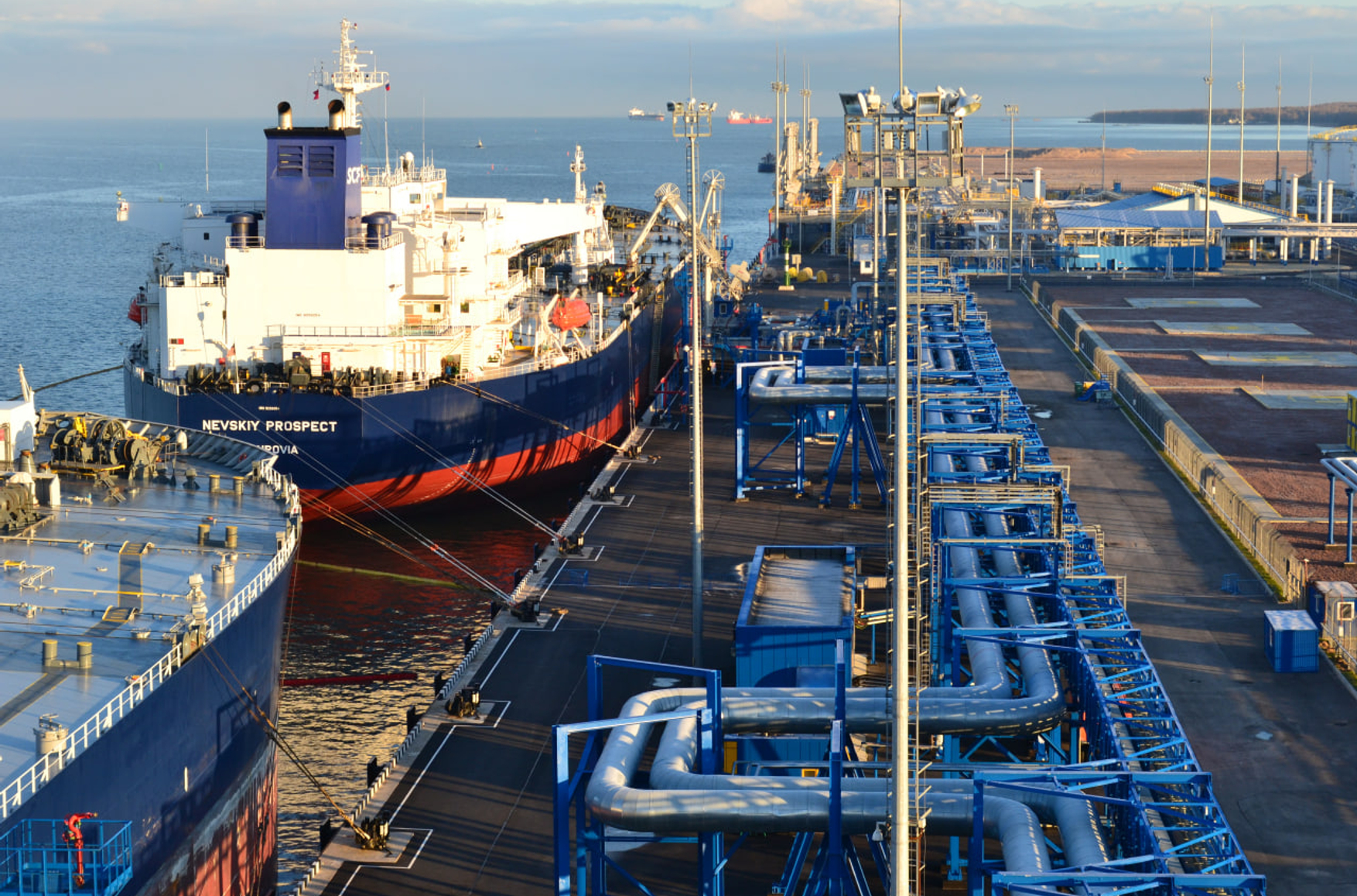 The sanctioned crude oil tanker Nevskiy Prospect — part of Russia's “shadow fleet” — docked at an oil terminal in the port of Ust-Luga. Photo: Nevskaya Pipeline Company