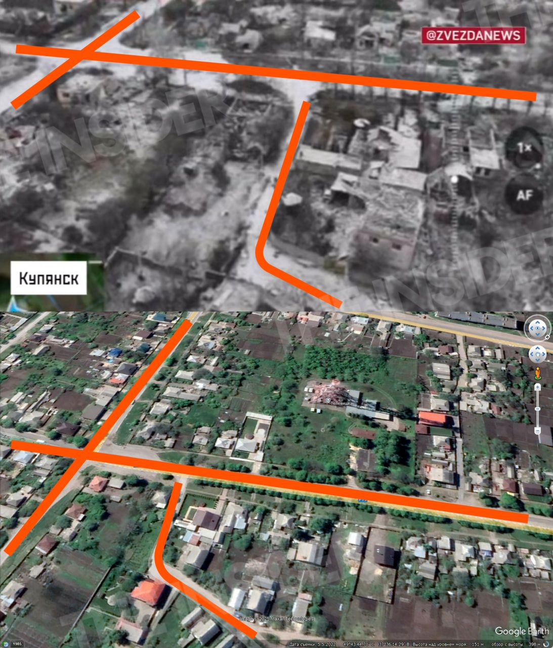 The Insider geolocated the footage and confirmed that the troops shown are indeed moving toward the outskirts of Kupiansk, through a residential area made up of private houses.