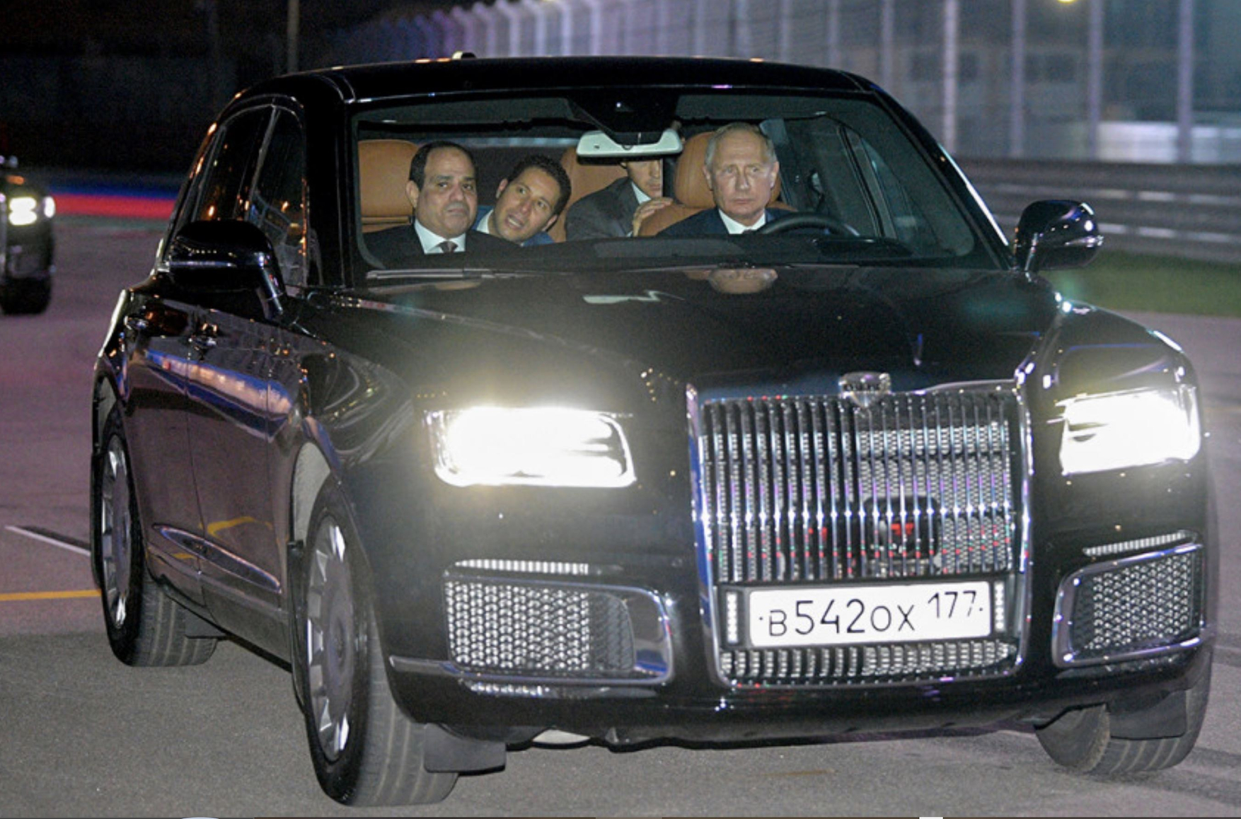 Vladimir Putin (behind the wheel) and Egyptian President Abdel Fattah el-Sisi in an Aurus car, 2018. Photo: TASS