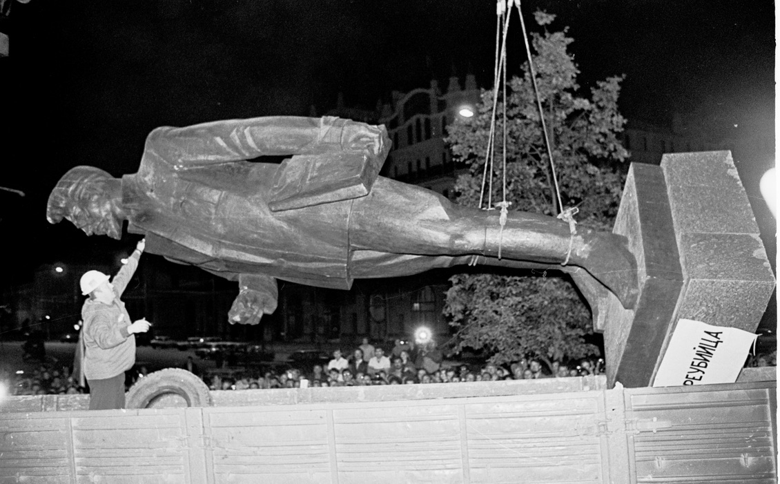 После того, как демонтировали памятник Дзержинскому, ночью у метро Площадь революции повалили памятник Свердлову, на котором были надписи «Цареубийца» и «Палач». Подогнали кран и очень легко сняли без участия толпы, а постамент долго еще стоял. Сейчас там некий пивной ресторан. На Дзержинского я не пошел. Я не знал, что его будут сносить и как-то прошляпил это дело. Потом уже и Свердлова убрали, а потом потихонечку Калинина, который стоял возле военторга. Там сейчас автомобильный салон. А все памятники увезли в «Музеон».