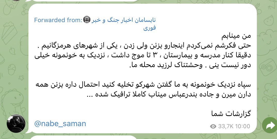 Еще один пользователь, студент, готовящийся к вступительным экзаменам, — оставил самое раннее по времени свидетельство: 28 февраля он написал в учебном чате, что находится в Минабе, слышал три ударные волны рядом с домом, весь район трясло, а КСИР приказал эвакуировать поселок. Его геоверификация, однако, слабая: аккаунт существует всего три месяца, пользователь состоит лишь в одной группе, и в истории его сообщений нет упоминаний Минаба или Хормозгана до удара. Впрочем, если посмотреть на картину разрушений базы КСИР, можно насчитать именно три очевидно разрушенных здания, одно из которых — школа.