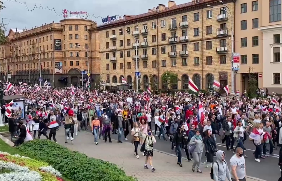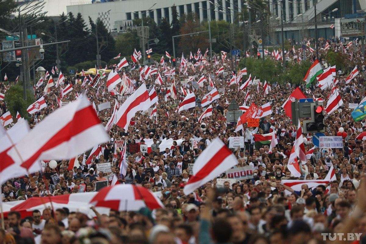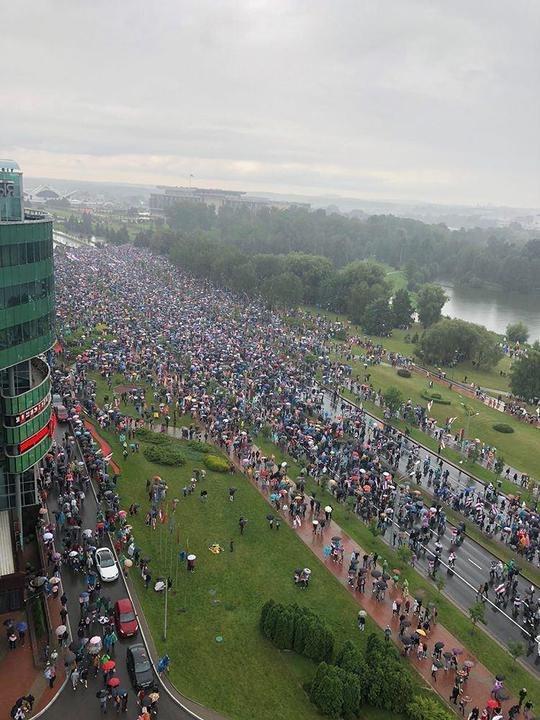 В протестах в столице Белоруссии, по оценкам «Интерфакса», участвуют больше 100 тысяч человек, которые растянулись вдоль всего проспекта Независимости. Жители Минска вышли на «Марш единства» против действующей власти в стране.