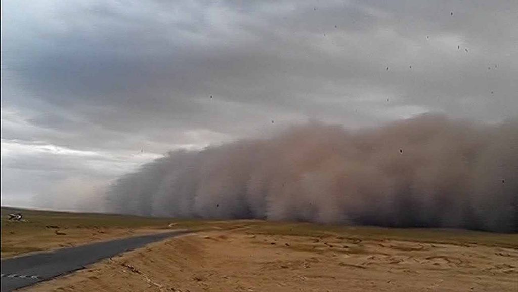 Буря накрыла всю Монголию, скорость ветра может достигать 34 м/с. Непогода повредила линии электропередач, что привело к отключениям электричества в трех районах.