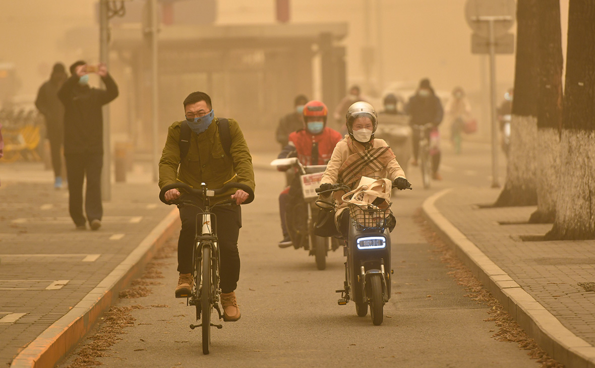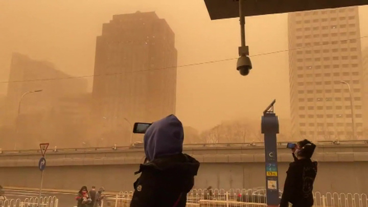 Песчаная буря привела к пробкам на дорогах, видимость в городе не превышает 1 тысячи м. Власти Пекина объявили желтый уровень опасности в связи с пылевой бурей, рекомендовали отменить мероприятия на открытом воздухе, а также без крайней необходимости не выходить на улицу.