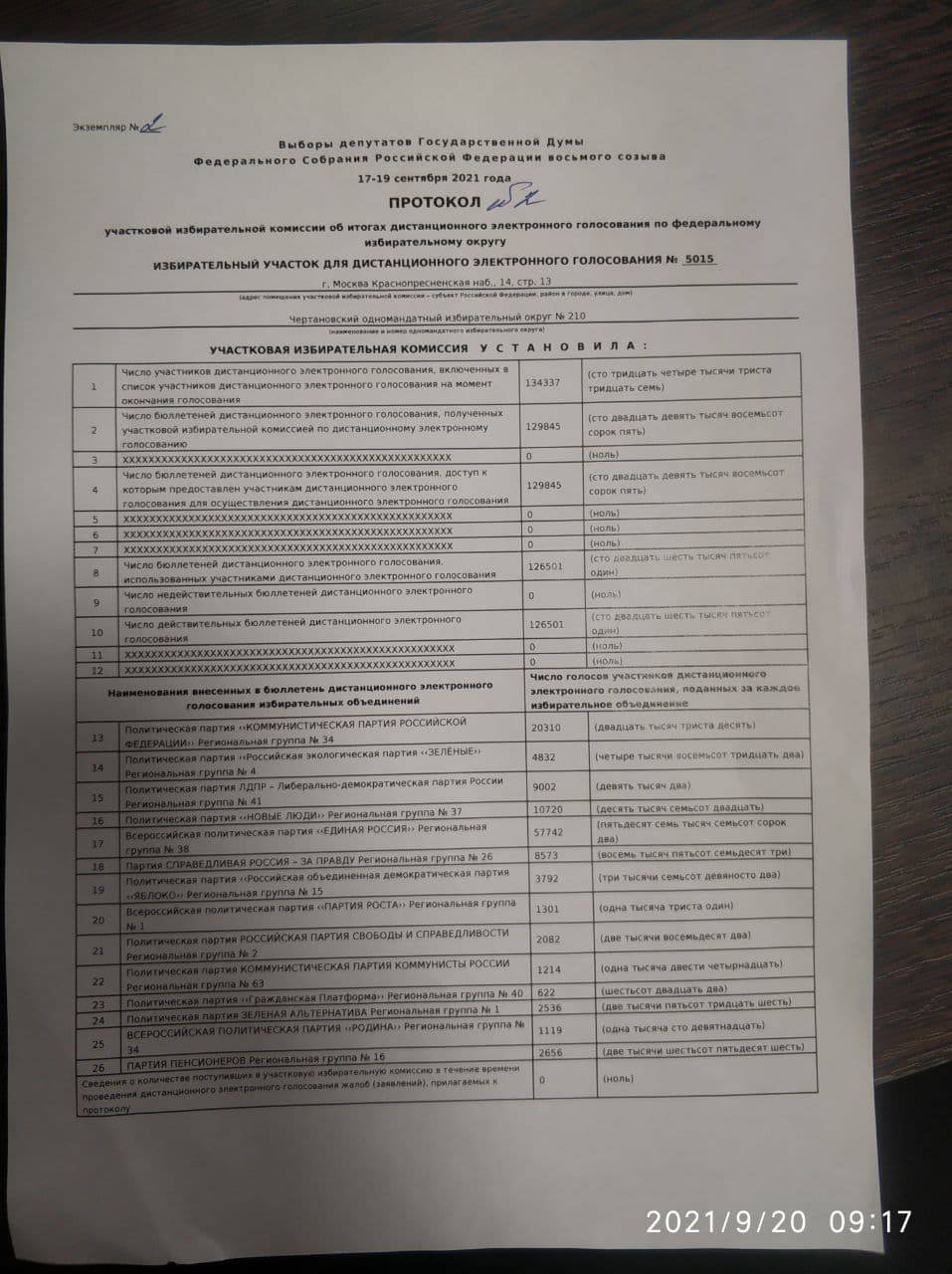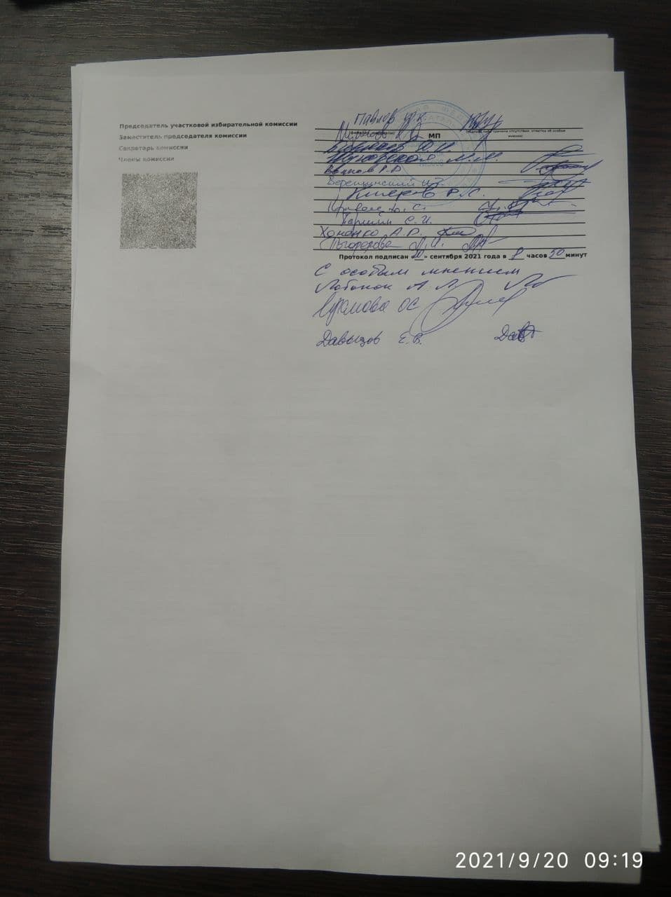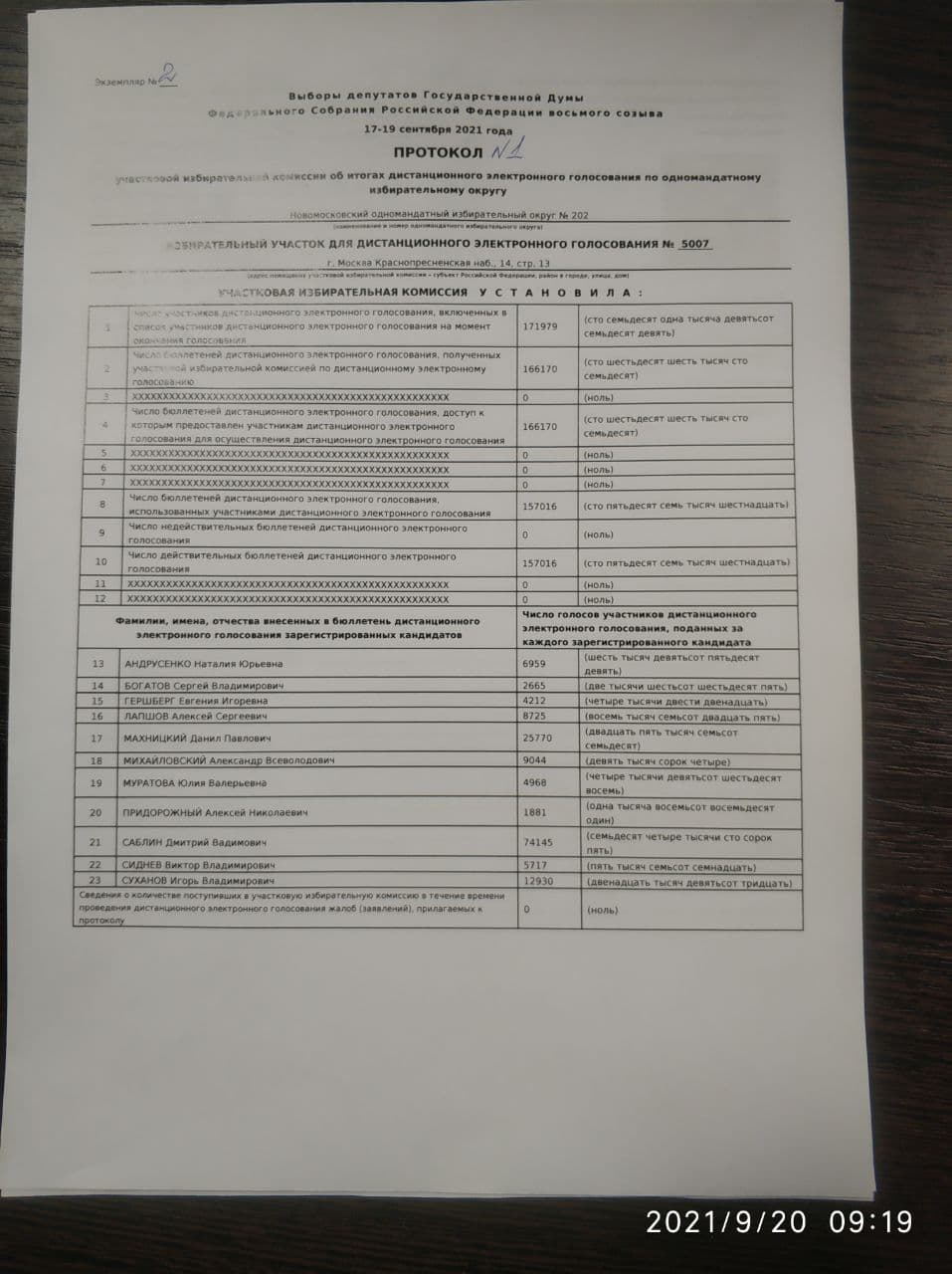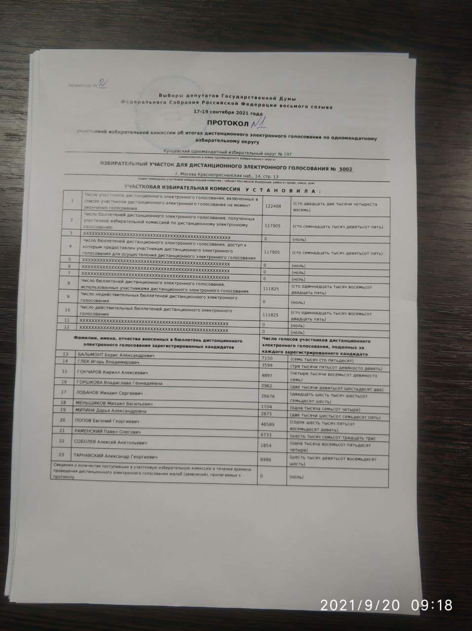 Протоколы сфотографировал наблюдатель Денис Шендерович, который подтвердил их подлинность.