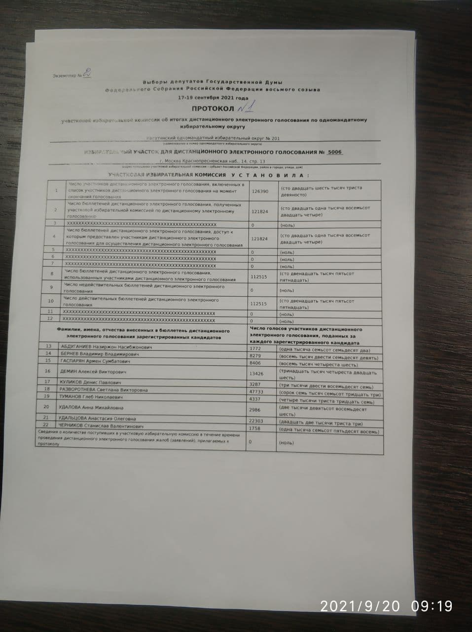При этом протоколы результатов электронного голосования в Москве были обработаны еще ночью. Их представили наблюдателям и увезли в ТИК для того, чтобы ввести в систему ГАС «Выборы».