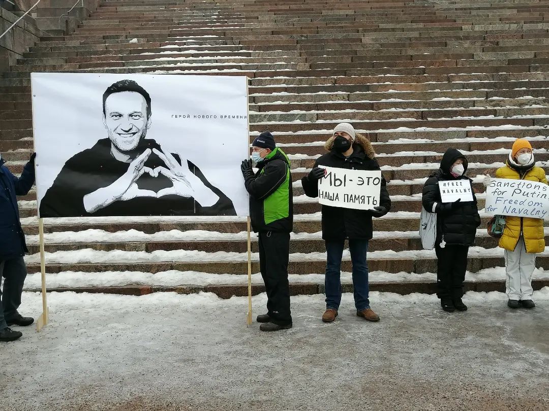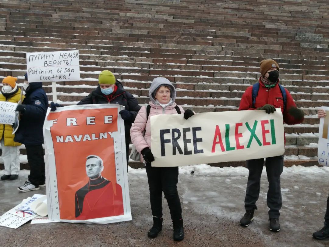 К акциям солидарности с политзаключенными в России присоединились также финны и эстонцы. В Финляндии митинги прошли прямо на Сенатской площади перед главным фасадом Кафедрального собора. Поддержать Навального и других политически преследуемых в России собралось несколько десятков человек.