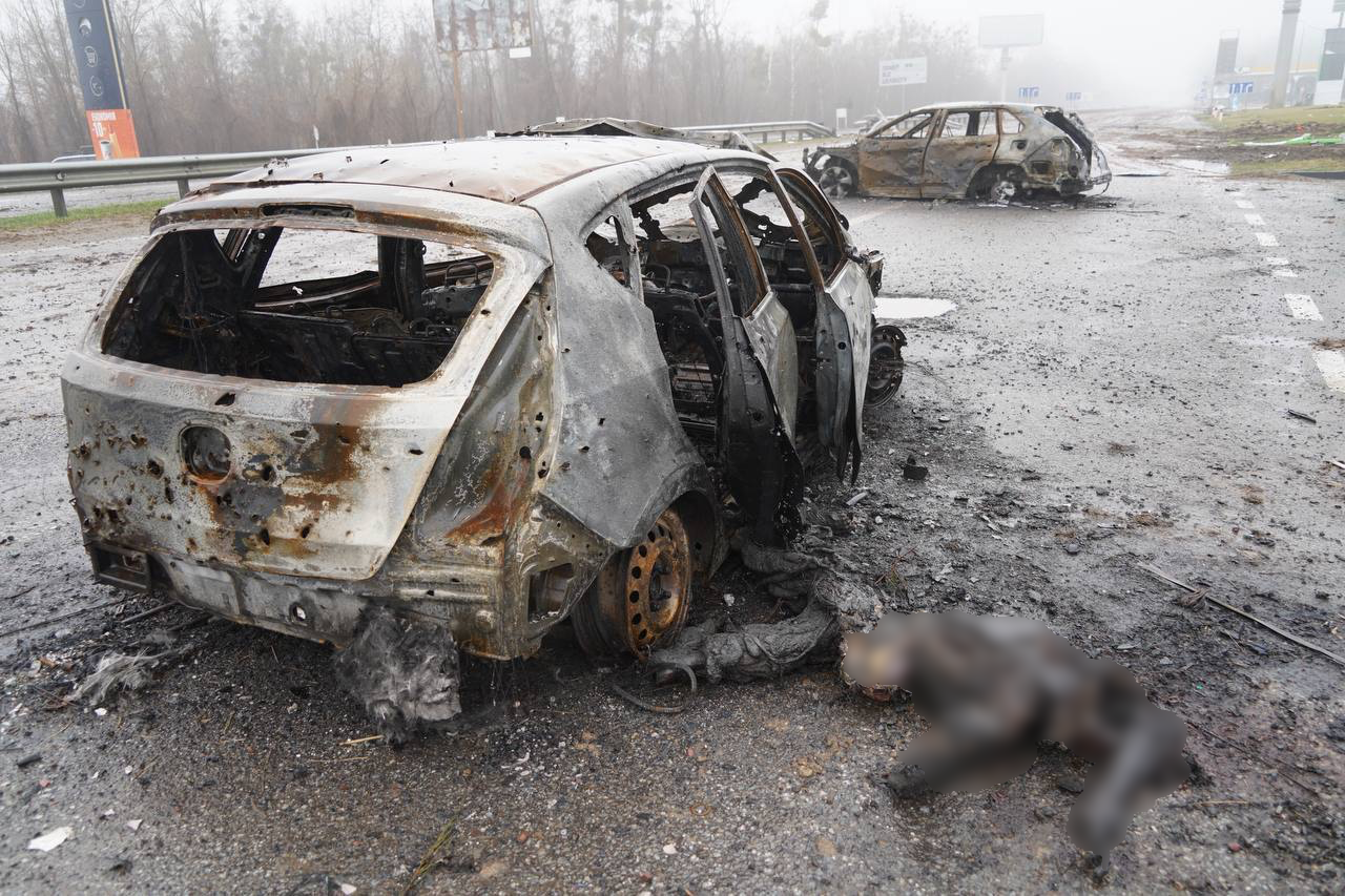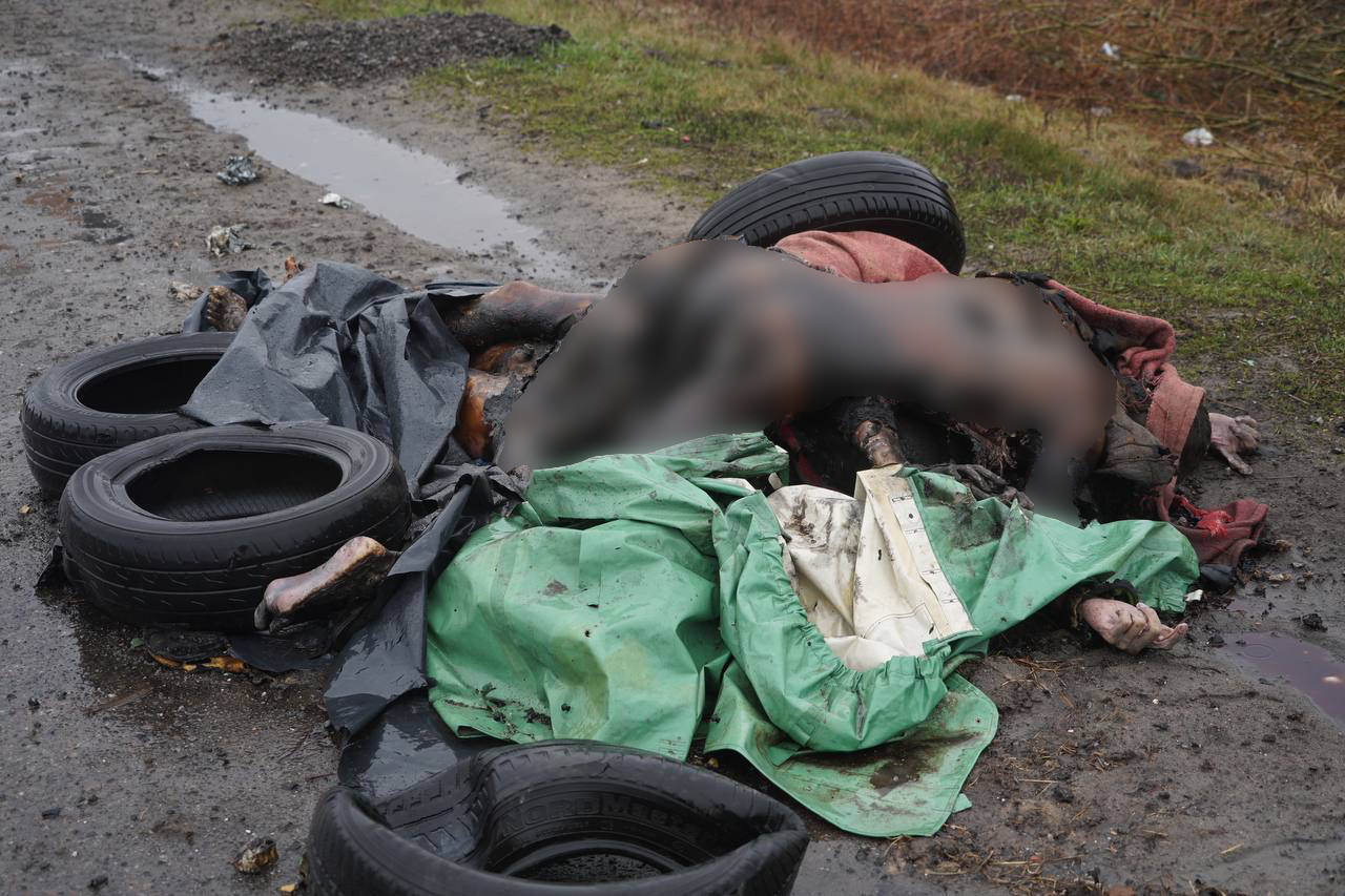 Людей, которые пытались выехать из Житомира в Киев, расстреливали и сжигали прямо на трассе. Фотографии убитых опубликовали украинские СМИ. Информацию The Insider подтвердил глава поселка Дмитровка Тарас Дидич. По его словам, российские военные убивали людей в 25 километрах от украинской столицы на границе сел Мила и Мрия по направлению из Житомира в Киев, где справа находится отельно-ресторанный комплекс «Бабушкин сад», а слева — заправки. Это подтверждается сверкой фотографий, сделанных после убийств, и фото этой местности на Google-картах. Дидич сообщил The Insider, что обнаружено не менее 29 тел.