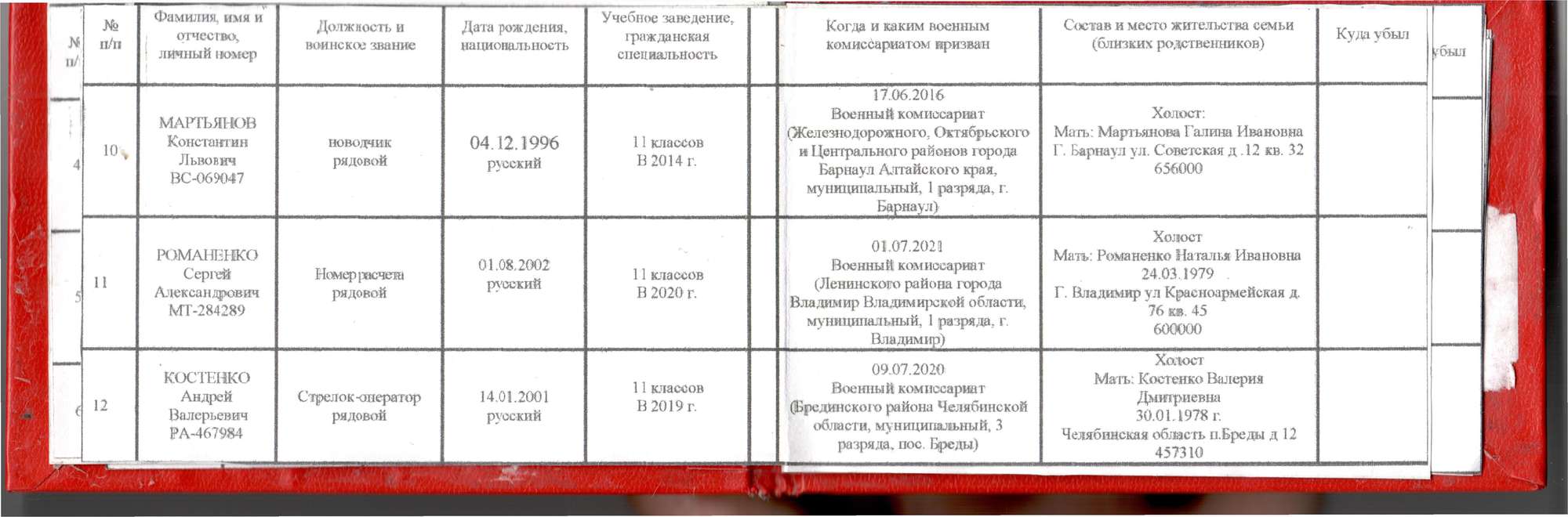 Так же, как и Возисов с Горбуновым, Мартьянов закончил 11 классов и в 2016 году поступил на службу в армию. На многих фотографиях на его странице «ВКонтакте» мужчина запечатлен со своей сестрой, которая публикует на своей странице пропагандистские Z-посты.