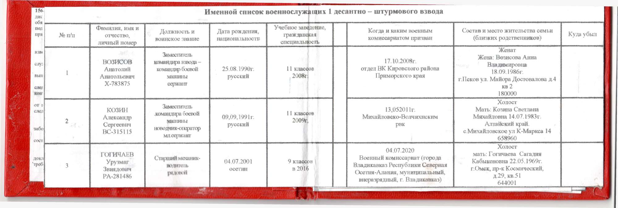 Возисов — один из самых старших членов полка в списке. Он отправился на службу в армию сразу после школы. «Слідство.Інфо» изучили комментарии на его странице «ВКонтакте» и выяснили, что одна из подруг Возисова — украинка, живущая в Ровно.