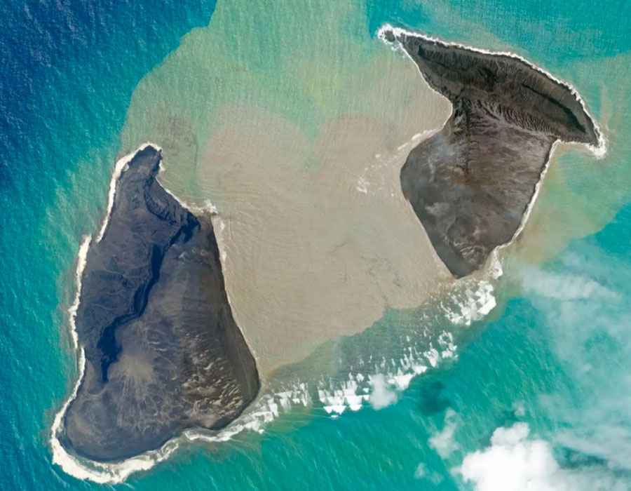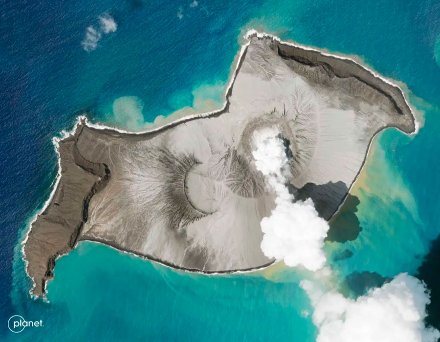 Извержение подводного вулкана Хунга Тонга-Хунга Хаапай близ тихоокеанских островов Тонга в январе 2022 года стало самым мощным из когда-либо зарегистрированных в современной истории. Оно вызвало 15-метровое цунами, разрушившее дома и унесшее жизни по меньшей мере шести человек. Извержение изменило облик дна океана. Вулканический остров почти полностью погрузился под воду.