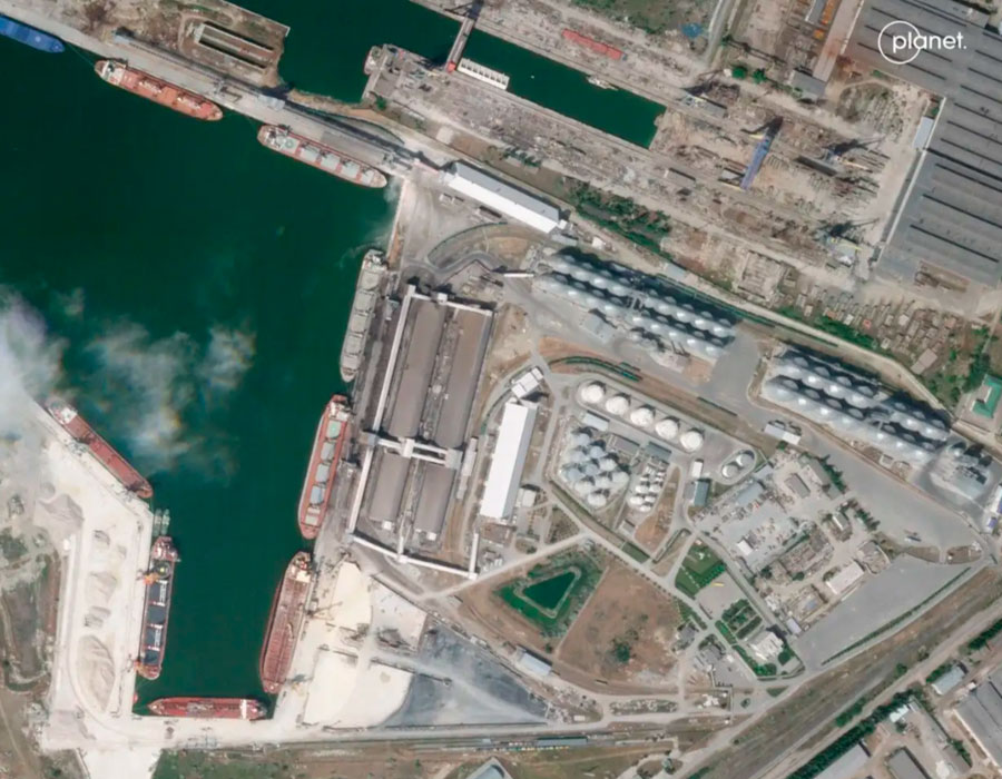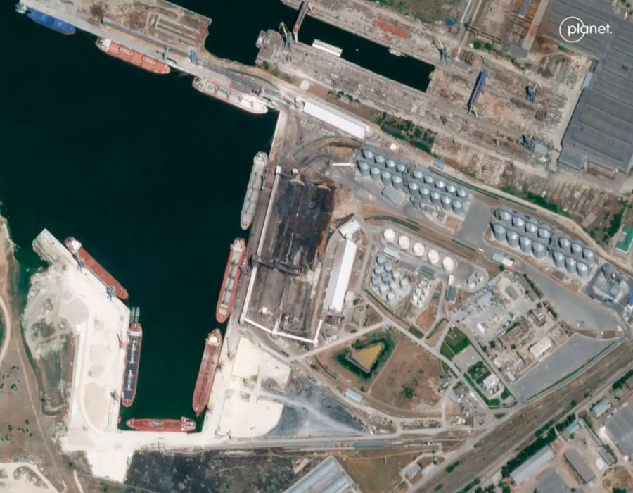 В июне аналитики начали исследовать влияние войны в Украине на ситуацию с продовольствием в мире. На снимках видны атаки России на украинские зерновые порты, в том числе бомбардировки зерновых элеваторов в порту «Ника-Тера» в Николаеве. Развязанная российским президентом Владимиром Путиным война в Украине стала причиной продовольственного кризиса во многих странах мира, которые зависят от экспорта украинского и российского зерна. Сам президент России требовал от Европы снять с РФ санкции в обмен на экспорт злаковых.