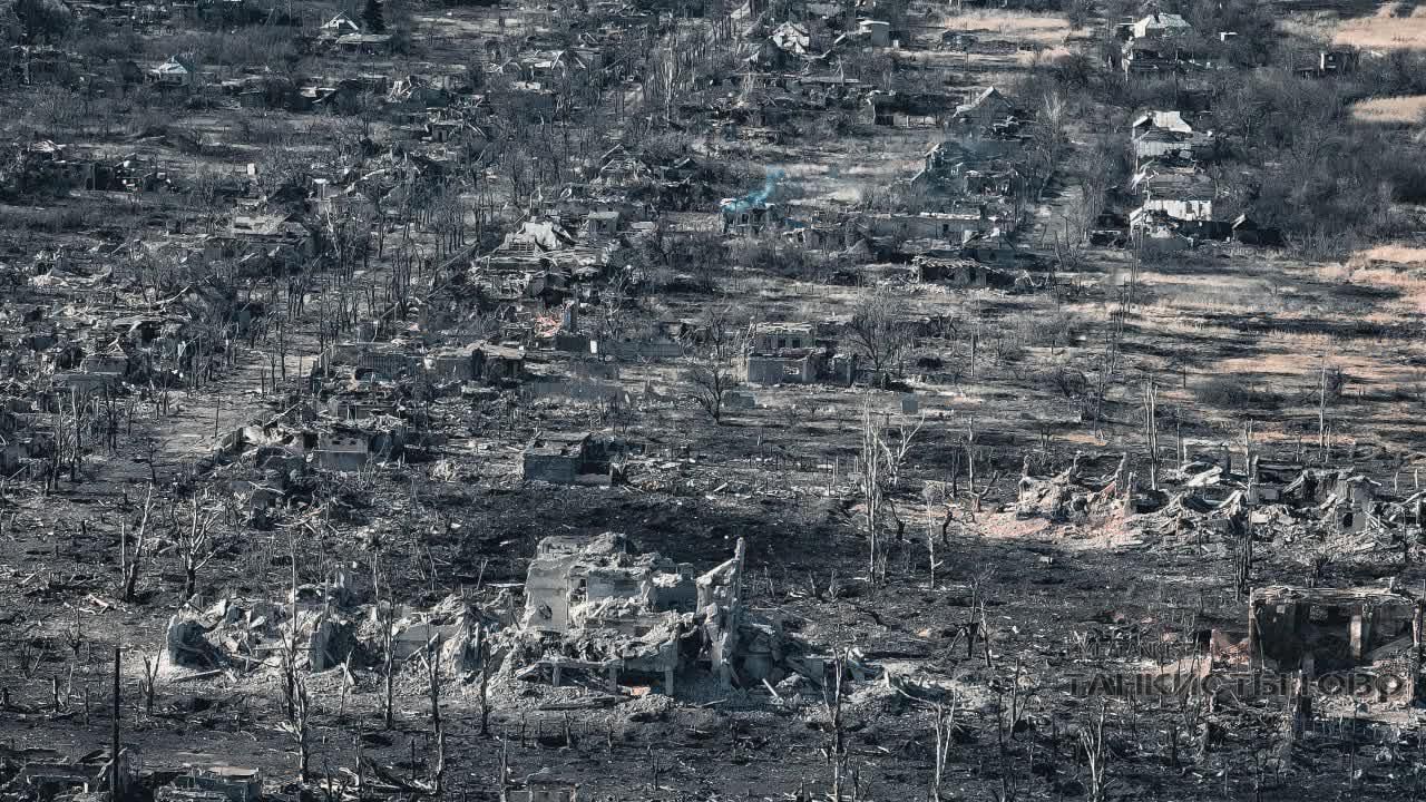 К 4 марта город Марьинка в Покровском районе Донецкой области полностью разрушен из-за продолжительных боев в результате российского вторжения. Фото опубликовал Telegram-канал «Танкисты ЮВО».