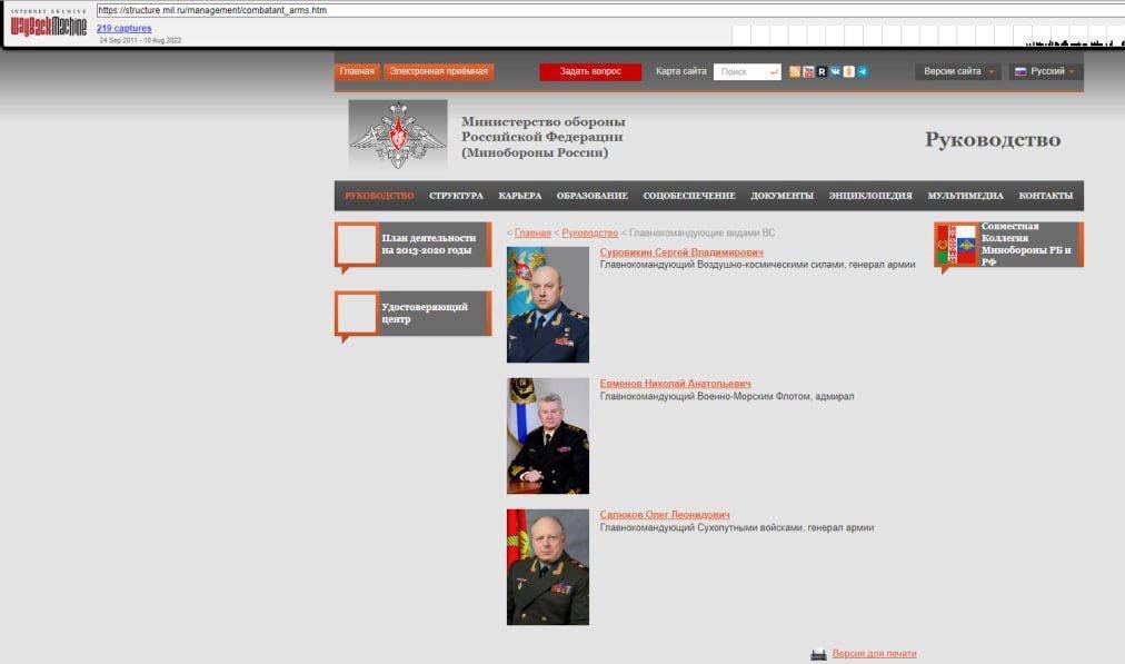Биография генерала Сергея Суровикина пропала с сайта Минобороны. Ранее он значился в списках главнокомандующих ВС на сайте, вместе с главкомом сухопутными войсками и ВМФ.