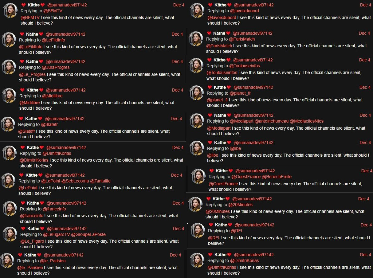 Antibot4navalny нашел десятки аккаунтов, применяющих такую стратегию. Большинство из них — это заброшенные аккаунты, впоследствии взломанные и украденные у владельцев. Как рассказали опрошенные AFP эксперты, французские спецслужбы считают, что за этой кампанией стоит Россия. Цели операции — отвлечь внимание журналистов, работающих с дезинформацией и проверкой фактов, сделать фейковые новости видимыми за счет массового распространения, популяризация идеи об усталости европейцев и американцев от всего, что связано с Украиной.