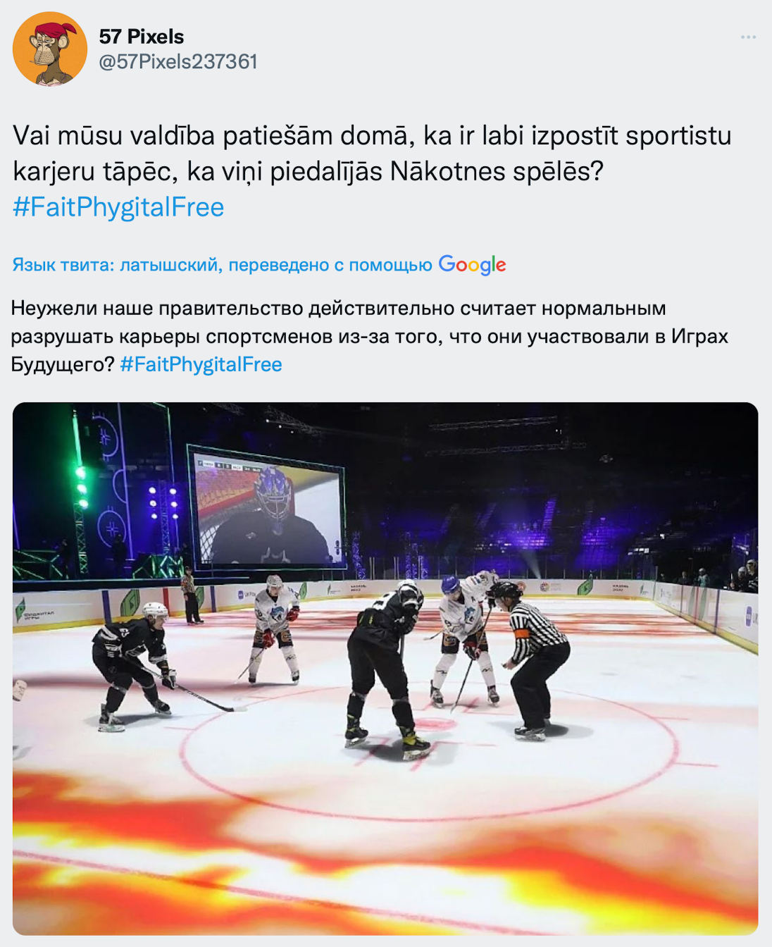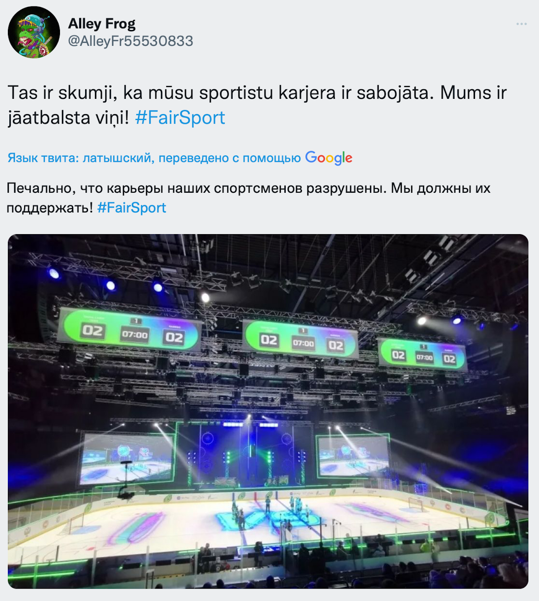 Их активность связана с новостью о том, что Федерация хоккея Латвии (LHF) приостановила лицензии латвийских спортсменов, принявших участие в «Играх будущего» в составе команды BalticSelect, которые состоялись в Казани. Некоторые из них выступали за национальную сборную этой страны.