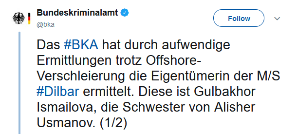Речь идет о твите Ослунда, опубликованном в январе 2022 года, в котором экономист назвал Усманова и Романа Абрамовича «любимыми олигархами Путина» и призвал ввести против них санкции; а также о твитах германской полиции от апреля того же года, где рассказывалось, что владелицей яхты Dilbar, арестованной в Гамбурге, является сестра Усманова Исмаилова.