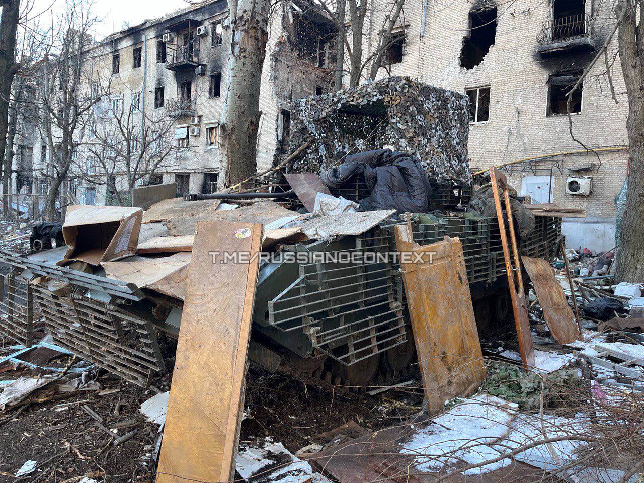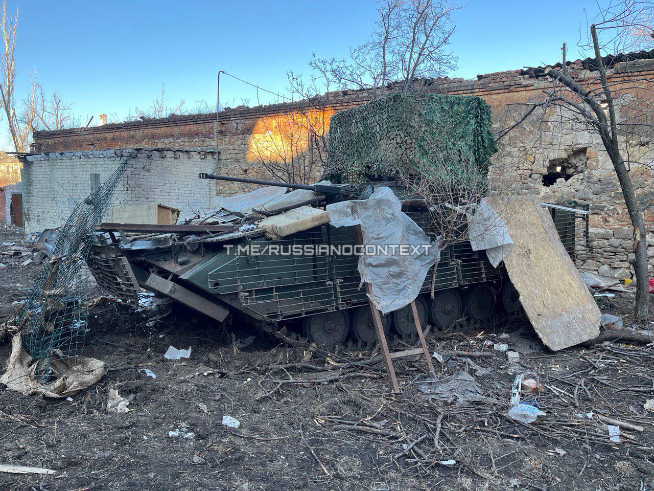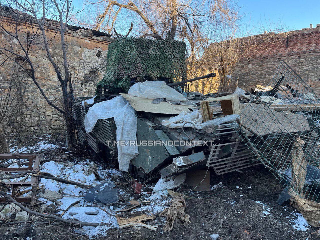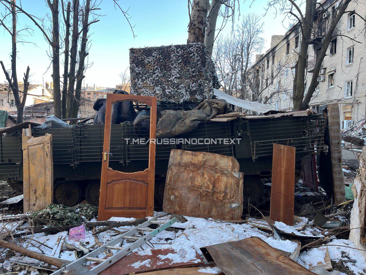 В Бахмуте ВС РФ маскируют военную технику, заваливая ее грудами мусора.