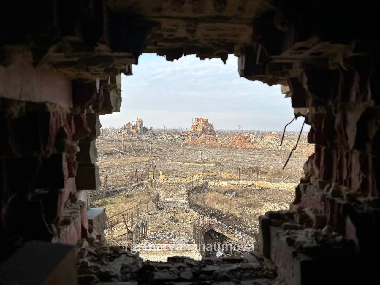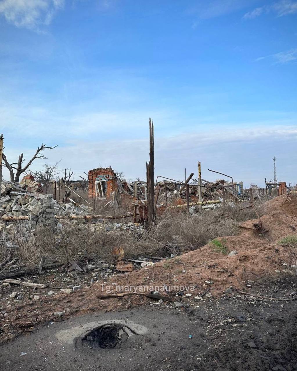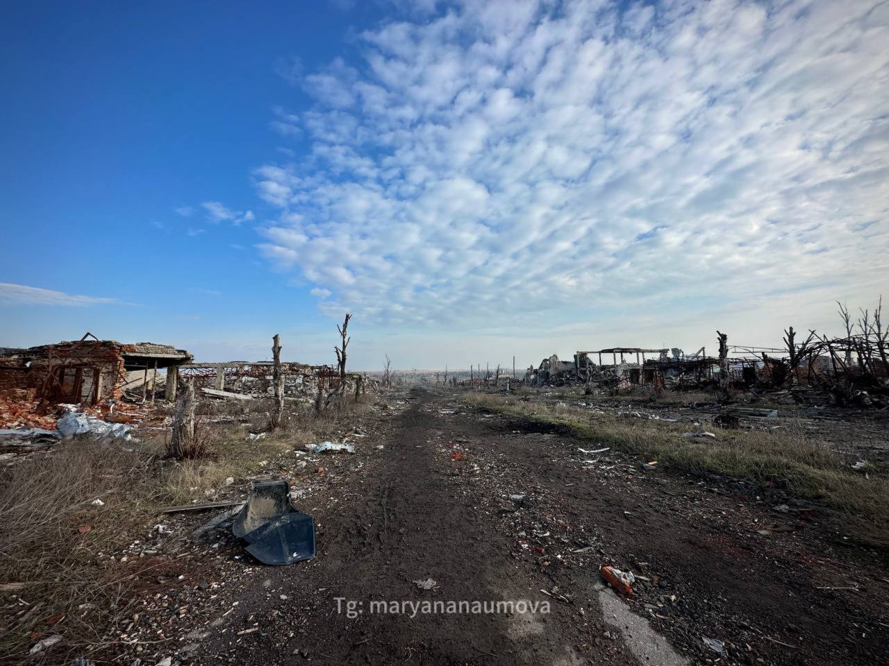 «Военкор» и провоенная активистка Марьяна Наумова выложила фотографии из занятой российскими войсками Марьинки к западу от Донецка.