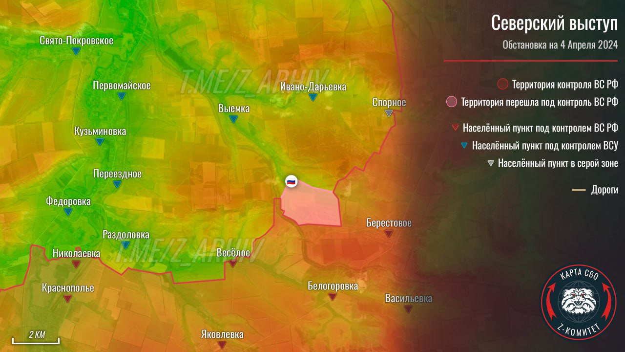 По данным Telegram-канала «Z комитет + карта СВО», на данном направлении в центре квадрата Веселое — Выемка — Спорное — Берестовое находится укрепрайон из нескольких крупных опорных пунктов. Основной костяк обороны там представлен 10-й отдельной горно-штурмовой бригадой и 54-й ОМБр.