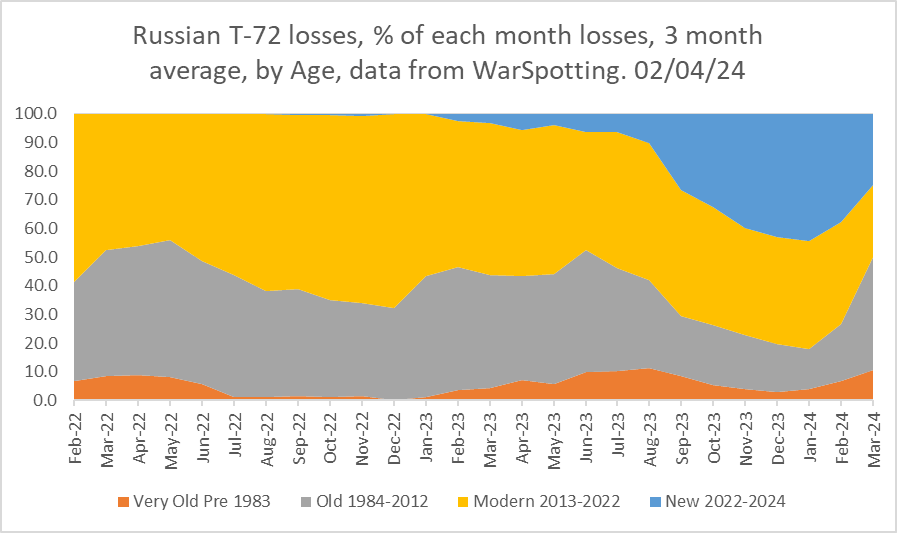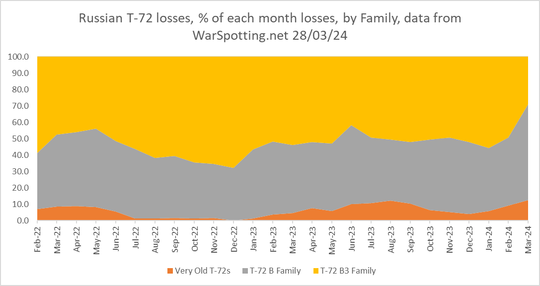 - В структуре потерь российских танков Т-72 резко выросла доля сравнительно старых модификаций;
