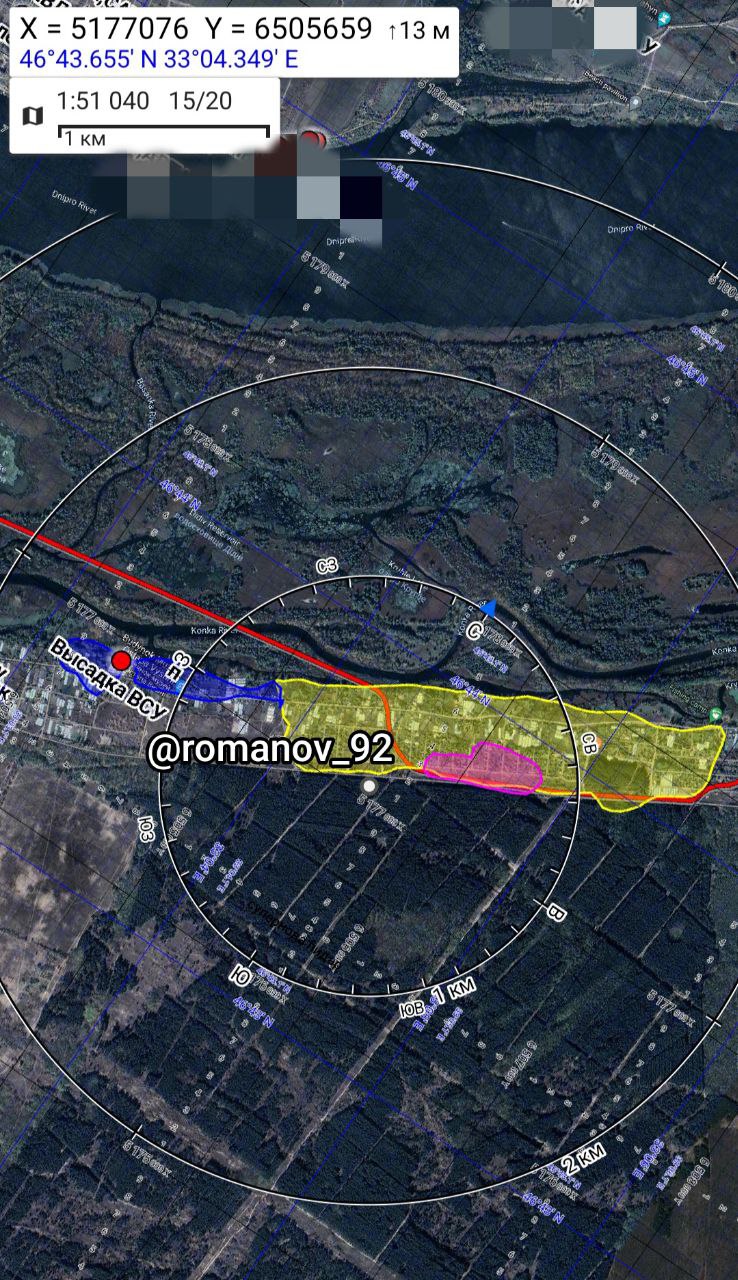 «Военкор» Владимир Романов рассказывает о ситуации на левом берегу Днепра. По его словам, ВСУ расширили плацдарм на западе села Крынки на ширину в 500 метров. Общая ширина контролируемого украинскими военными участка составляет 1,5 км, глубина — до 200 метров. Этот успех, как и высадка украинцев на западе Крынок, обусловлены «сдачей позиций без боя», утверждает Романов.