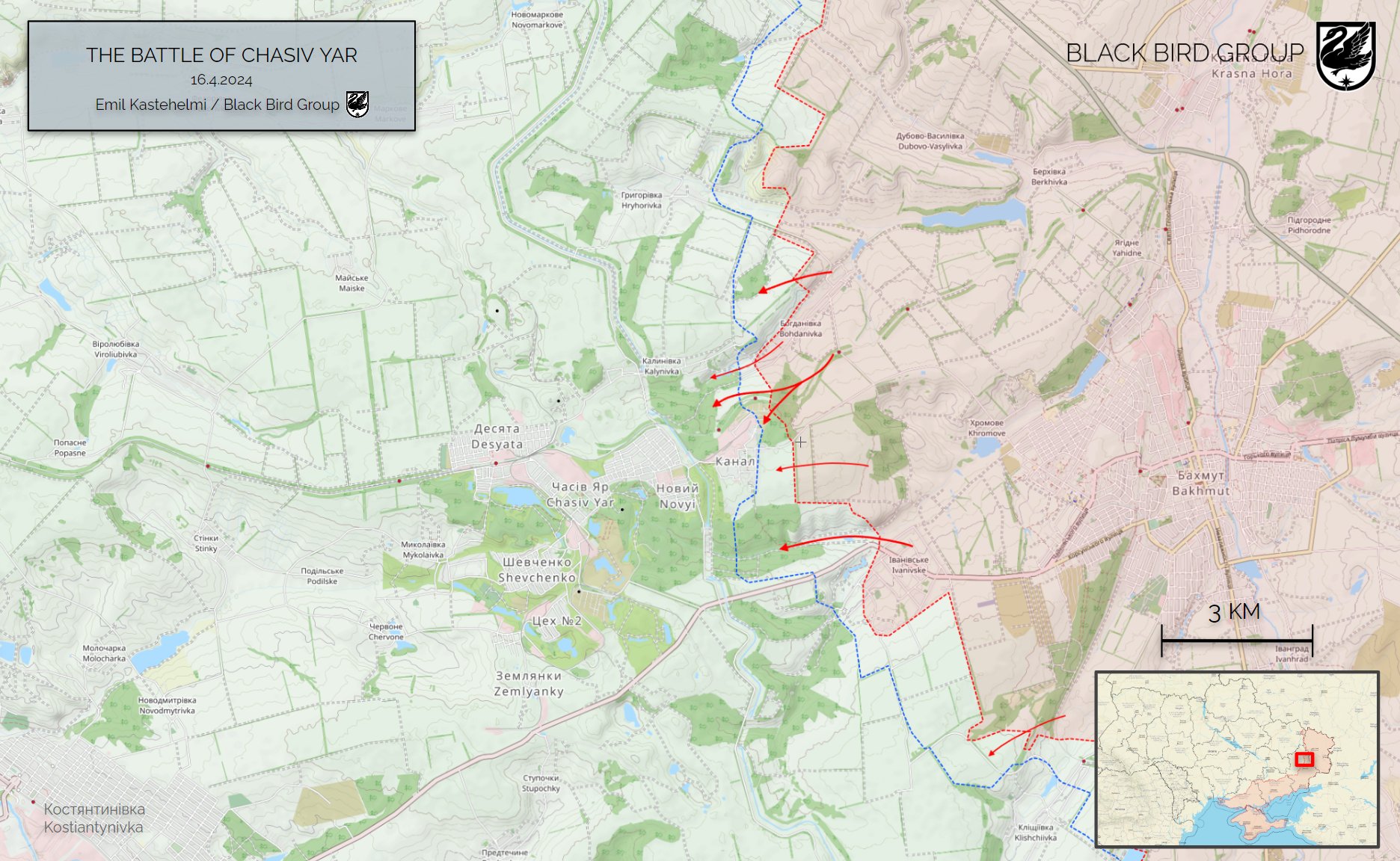 Аналитик Эмиль Кастехельми из OSINT-группы Black Bird Group публикует прогноз по возможному развитию наступления ВС РФ на Часов Яр. По его оценке, даже если российским военным удастся перейти через канал Северский Донец — Донбасс, за ним они столкнутся с несколькими линиями украинских ИФС. Помимо этого, в Часовом Яре есть и другие водные преграды, высотная застройка, а сам город расположен на возвышенности, что облегчает оборону.