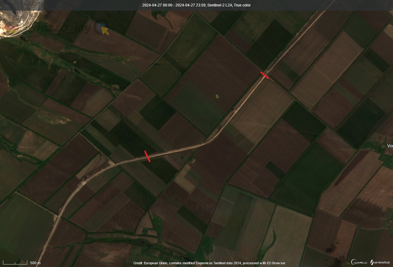 На оккупированной территории Донецкой области продолжается строительство железнодорожной ветки на Мариуполь, которое видно на спутниковых снимках. При этом, хотя на отдельных участках началась укладка второй колеи, на одном из перегонов имеется разрыв вообще без рельсов, поэтому новая железная дорога пока не готова к приему поездов.