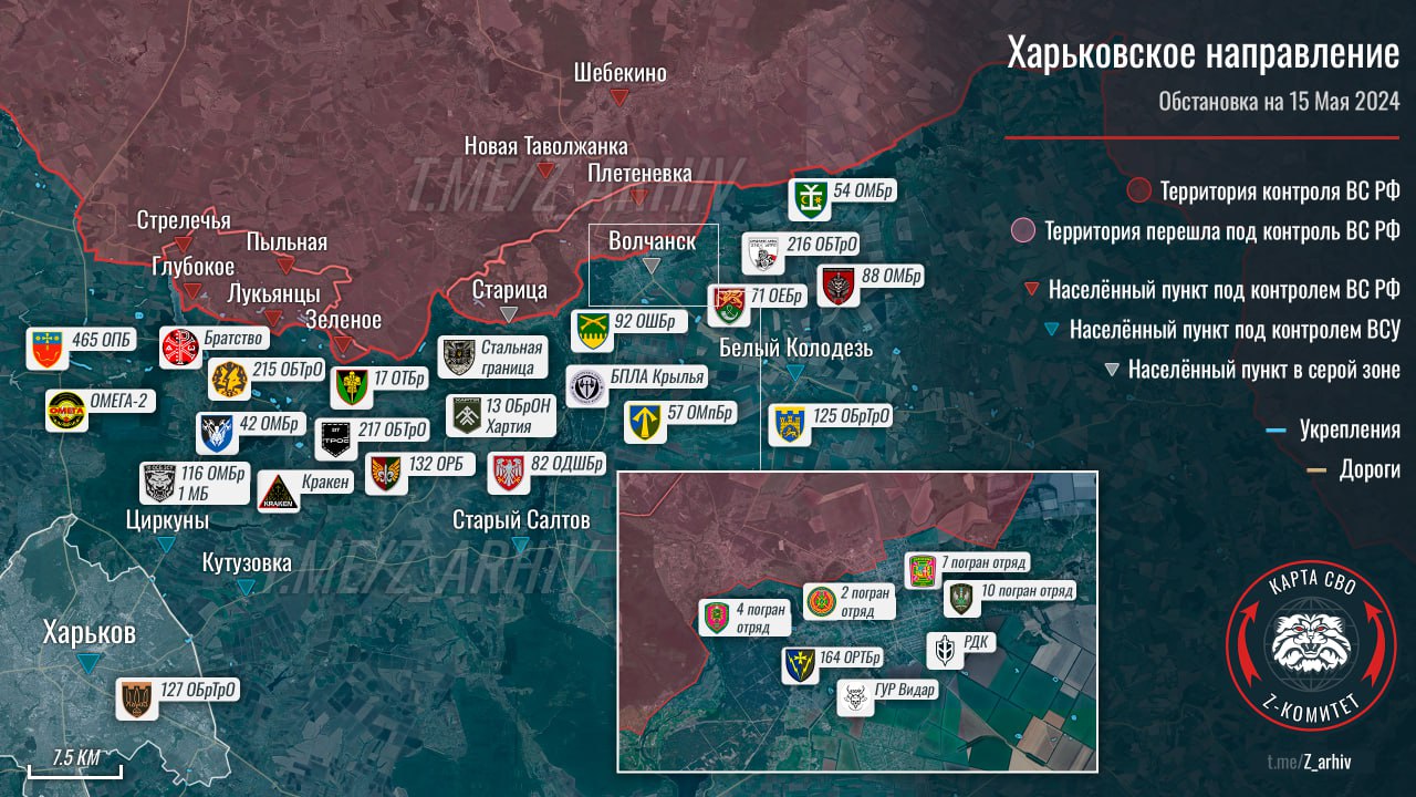 WarGonzo в сводке отмечает, что ВСУ с боями отступают в Волчанске, продолжаются бои за населенные пункты Старицы и Липцы, продвижение есть рядом с селом Лукьянцы. Примечательно, что ни о каких «прорывах» в тексте не упоминается, напротив, говорится о «пусть и не быстром, но методичном продавливании» обороны противника.