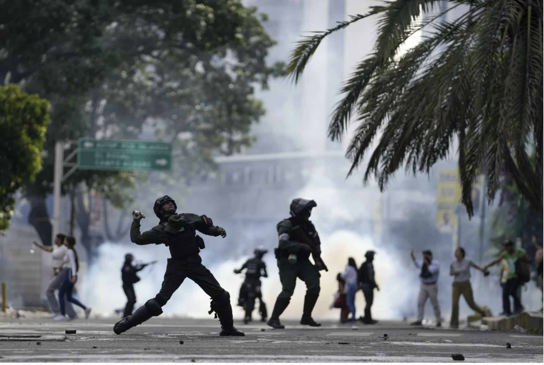 После объявления результатов президентских выборов в Венесуэле, на которых победителем официально назвали действующего президента Николаса Мадуро, в историческом центре Каракаса (столица страны) начались столкновения между полицией и протестующими.
