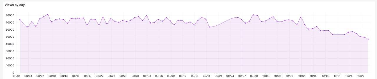 Эксперты проекта Vox-Harbor изучили для The Insider статистику крупных дагестанских Telegram-каналов и обнаружили, что количество просмотров за день в них с 11 октября упало в среднем примерно на 25%.
