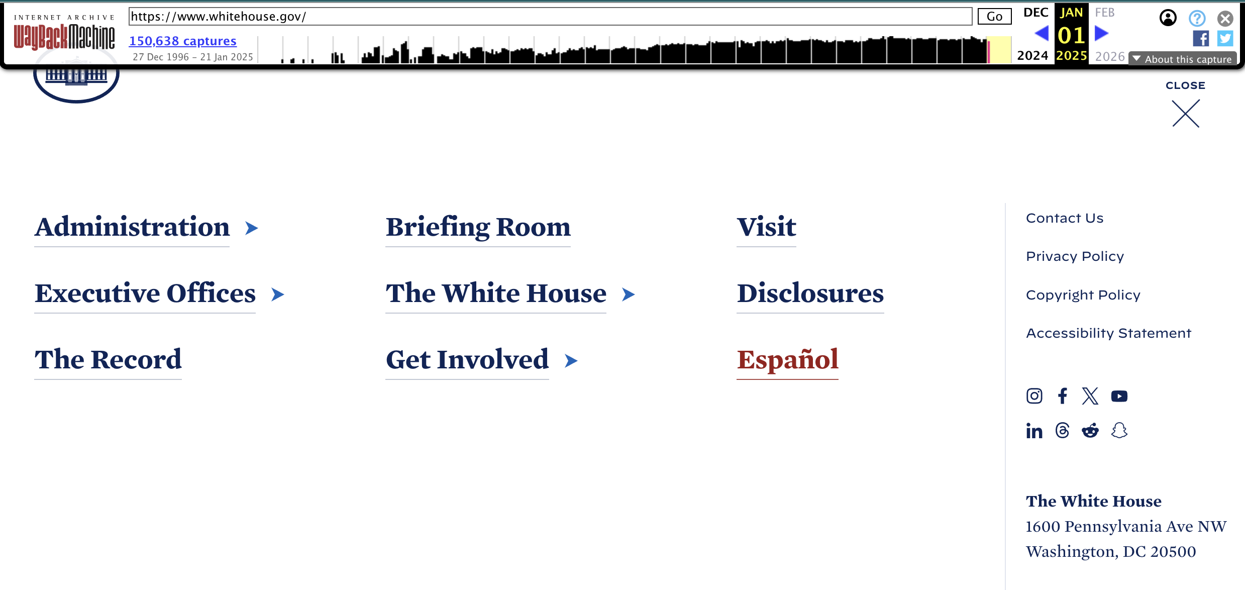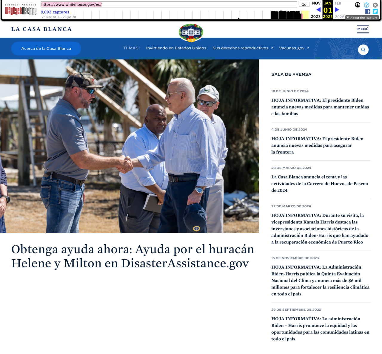 При этом до нового вступления Трампа в должность президента США по ссылке дублировались материалы на испанском языке. Это видно в более ранних версиях сайта, доступных в вебархиве.