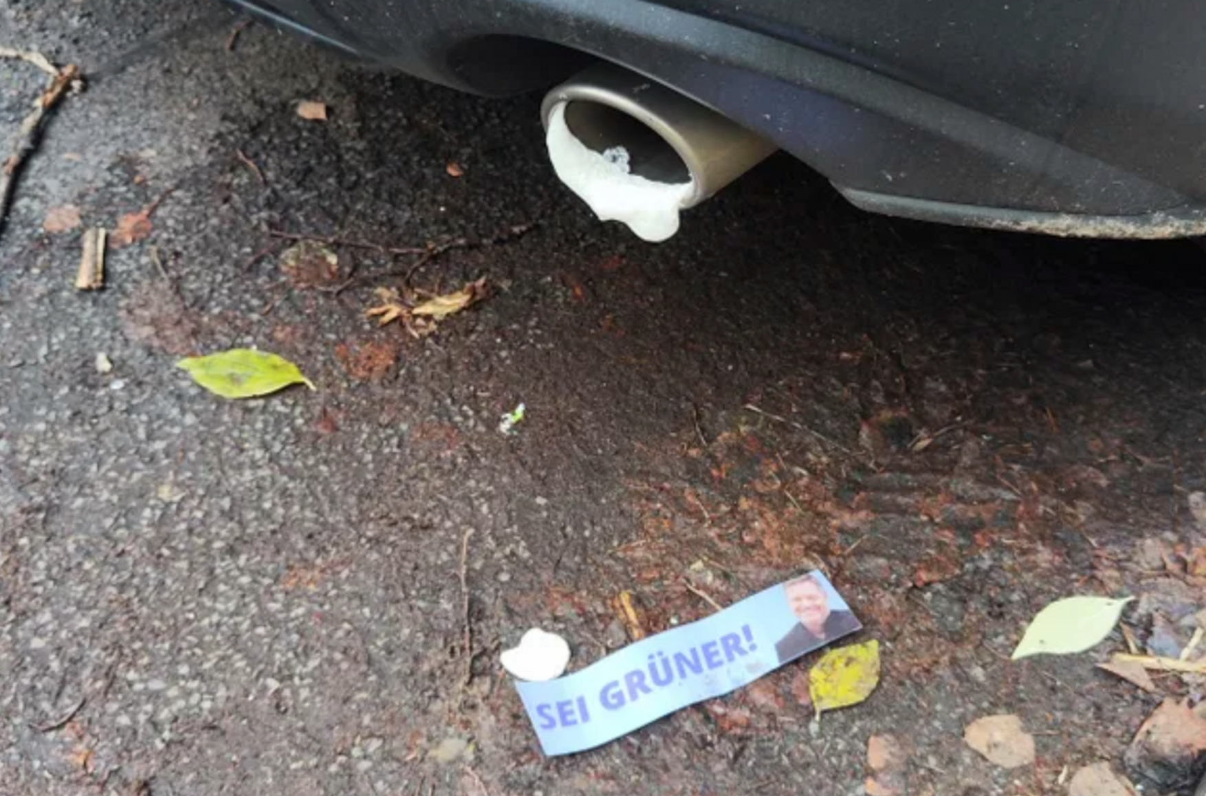 Однако вскоре стало известно, что примерно в то же время в районе Альт-Шёнефельд было повреждено 43 автомобиля. Диверсанты использовали монтажную пену, чтобы заблокировать выхлопные трубы, а на автомобилях оставили наклейки с лозунгом «Будьте зеленее!» и изображением улыбающегося Роберта Хабека. Эта акция была интерпретирована как работа радикальных климатических активистов, что вызвало общественное возмущение и негативные отклики в адрес Хабека и «Зелёной партии».