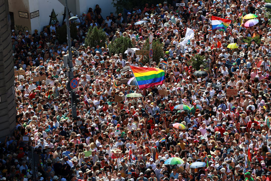 В столице Венгрии десятки тысяч человек приняли участие в ежегодном марше гордости ЛГБТК+ людей, несмотря на официальный запрет, основанный на так называемом «законе о защите детей». Полиция мотивировала запрет тем, что мероприятие якобы «пропагандирует гомосексуальность», что подпадает под действия нового законодательства.