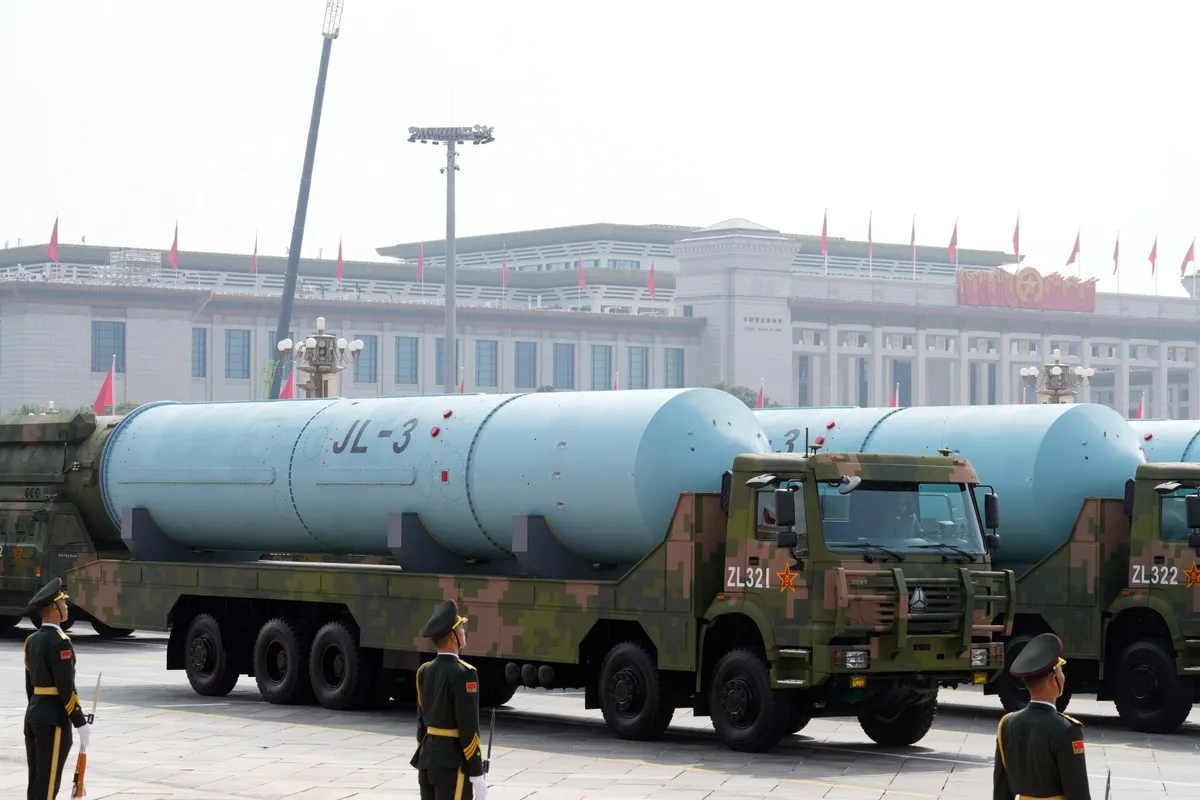 Согласно сообщению «Синьхуа», на параде 3 сентября Китай впервые представил свои стратегические силы наземного, морского и воздушного базирования в качестве ядерной триады. Она включала в себя авиационные ракеты большой дальности «Цзинлэй-1» (JL-1), межконтинентальные баллистические ракеты подводного базирования «Цзюйлан-3» (JL-3), а также межконтинентальные ракеты наземного базирования «Дунфэн-31» (DF-31) и «Дунфэн-61» (DF-61).