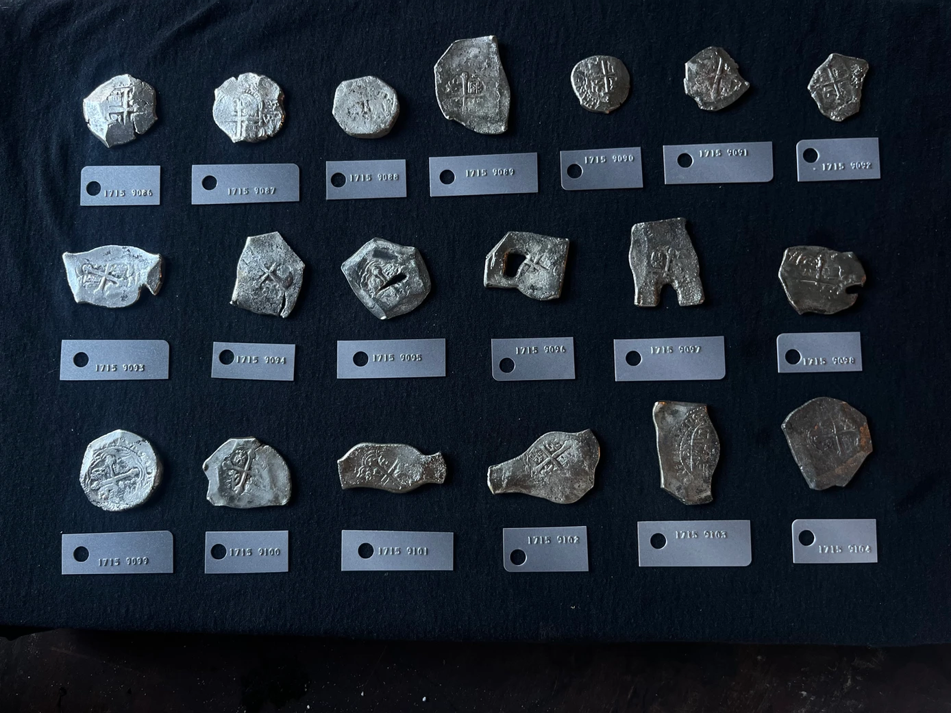 По данным 1715 Fleet – Queens Jewels, LLC — группы археологов и водолазов, которые занимаются поиском затонувшей флотилии — всего было найдено около тысячи золотых и серебряных монет. Они были отчеканены в испанских колониях в Боливии, Мексике и Перу.