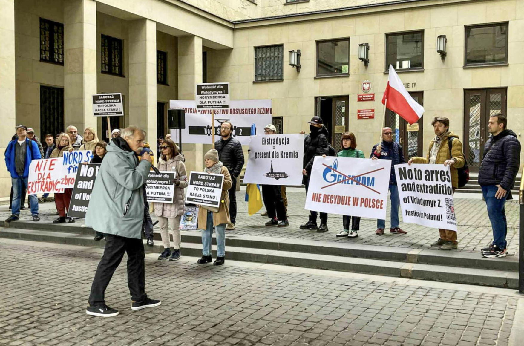Митинг у суда в Варшаве в поддержку украинца, подозреваемого в подрыве газопроводов «Северный поток». Фото: Елена Бабакова, Ґрати