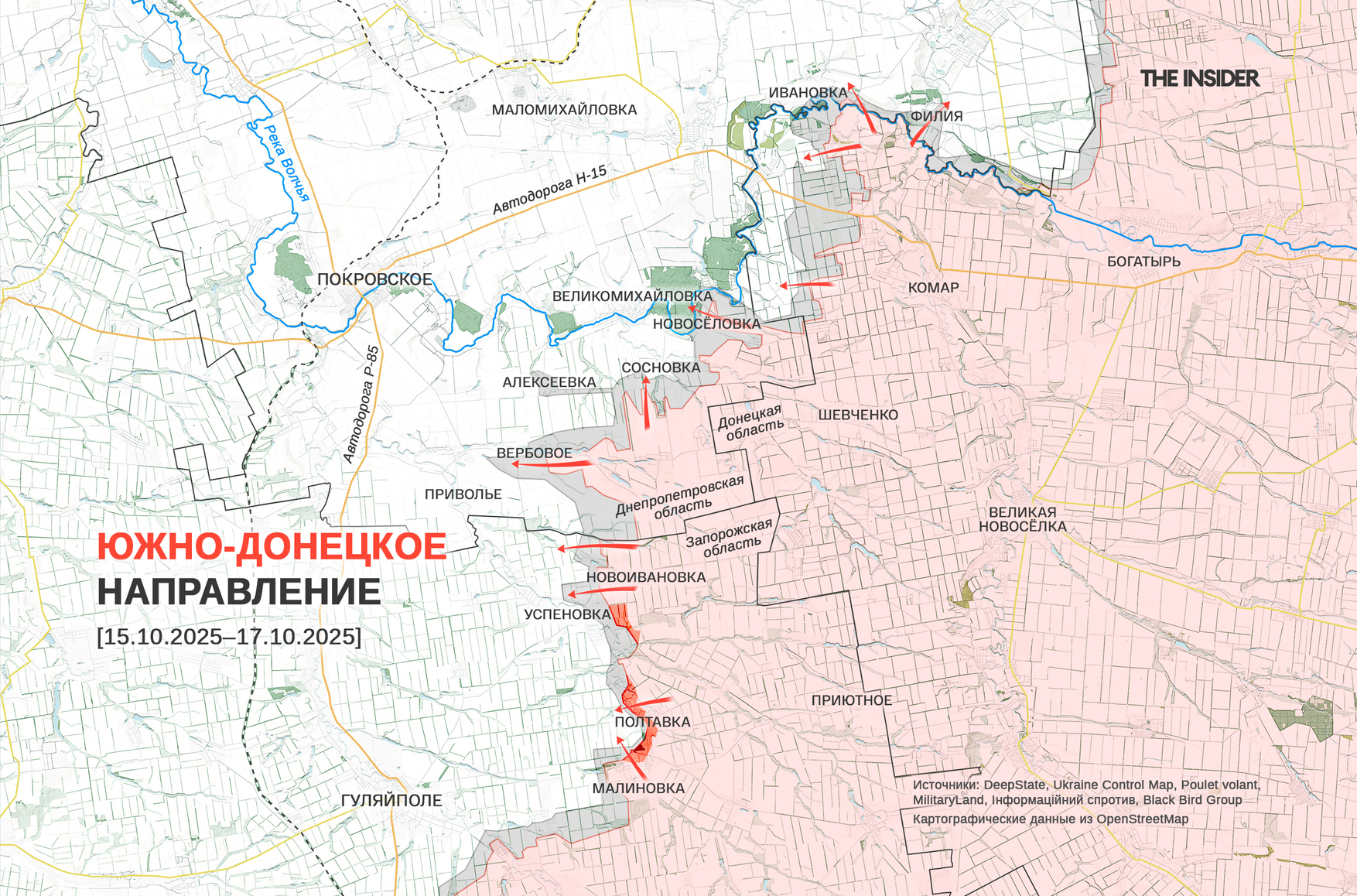 В DeepState отметили продвижение ВС РФ в районе Новоивановки, Малиновки и Полтавки на западном фланге направления. В Минобороны РФ, в свою очередь, отчитались о захвате Приволья в Днепропетровской области. Информацию подтвердил Z-канал «Воин DV», близкий к группировке войск «Восток», опубликовав видео «флаговтыка».
