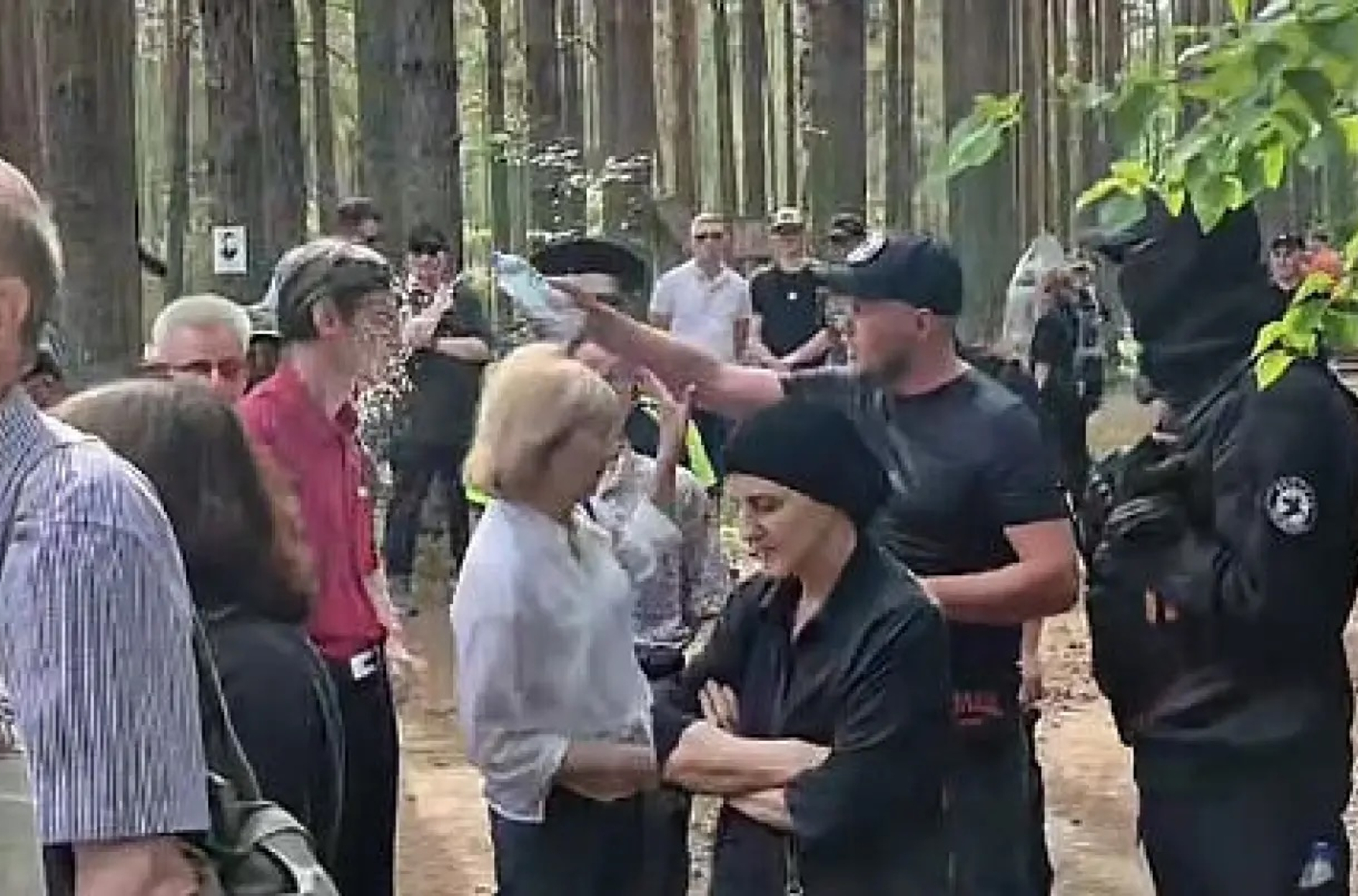Участников мемориальной акции обливали водой, громко исполняли «Катюшу» во время возложения цветов, вывешивали таблички с именами иностранцев, погибших в боях за ВСУ. Тем, кто требовал прекратить провокации, активисты ответили угрозой «посадить в тюрьму».