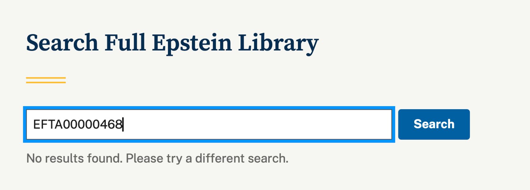 Найти этот снимок поиском по сайту также не получается, хотя соседние файлы находятся. В то же время файл EFTA00000468 по-прежнему доступен по прямой ссылке.