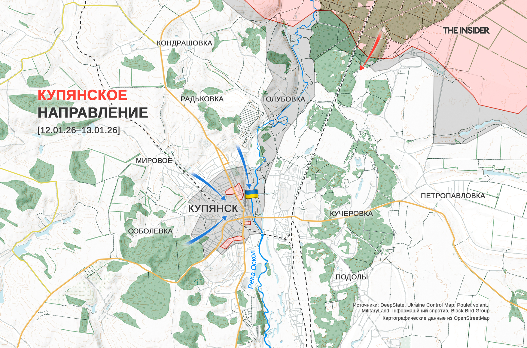 «Рыбарь» утверждает, что Купянск по-прежнему остается зоной интенсивных боев. В центре города, по данным канала, украинские подразделения сохраняют уверенное присутствие и продолжают переброску резервов, тогда как на северо-восточных окраинах российские войска удерживают позиции. На левом берегу реки Оскол, согласно информации «Рыбаря», фиксируются отдельные эпизоды «флаговтыков» в Подолах, однако о полном контроле над населенным пунктом речи не идет. Вместе с этим украинские силы, по утверждению канала, продолжают присутствовать также в Петропавловке, Куриловке и Кучеровке.