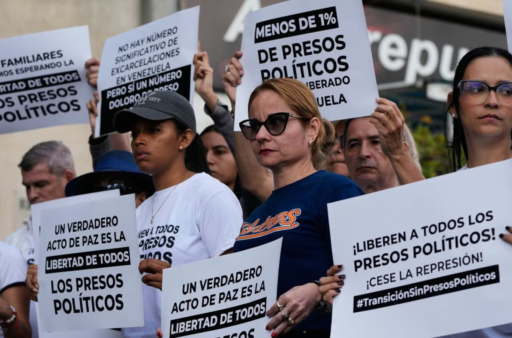 Фото: протест с требованием освобождения политзаключенных в Каракасе, январь 2026 / AP