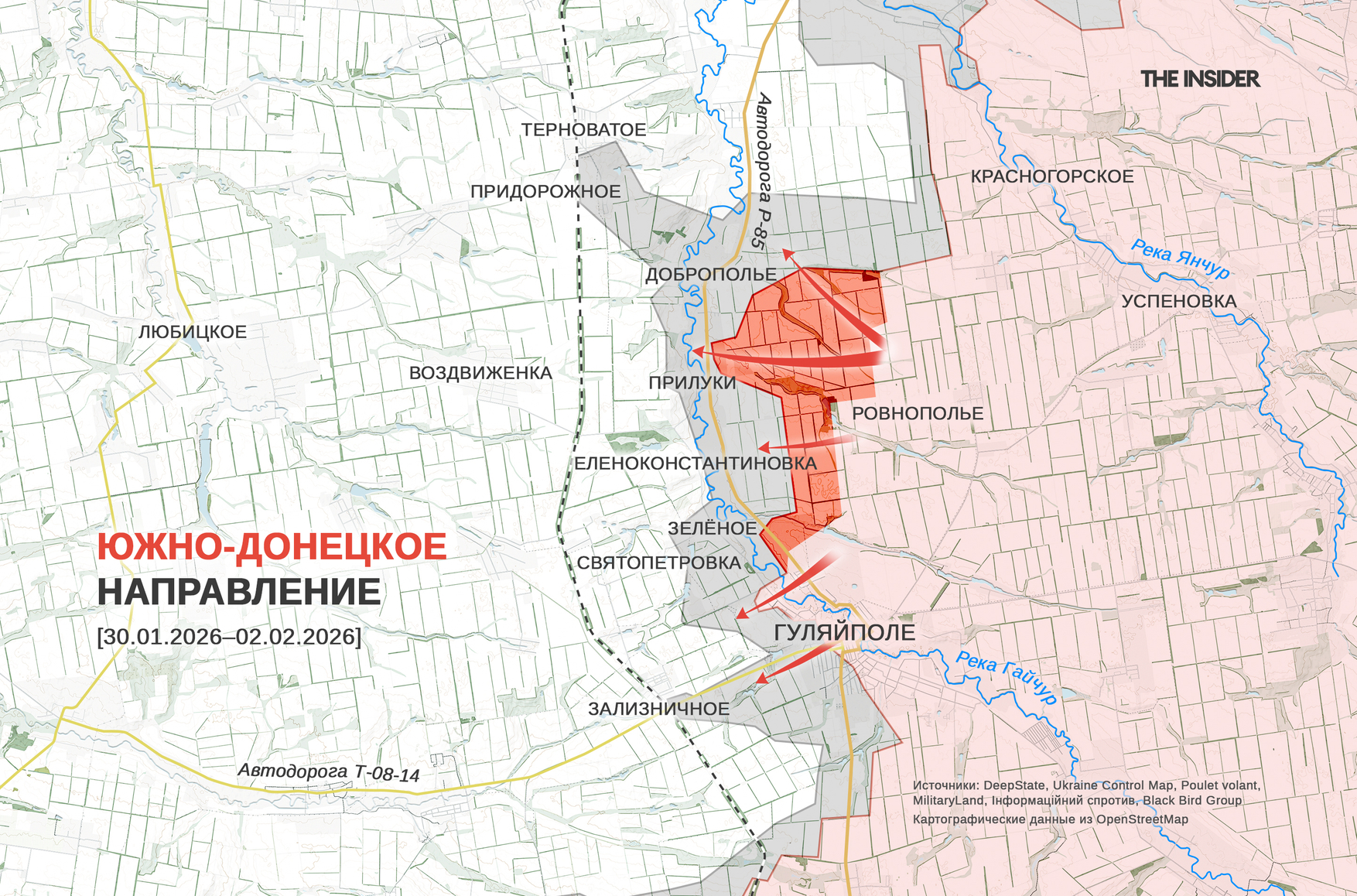 В Минобороны РФ заявили о захвате села Святопетровка (до 2016 года — Петровка) в Запорожской области и опубликовали видео «флаговтыка» в населенном пункте. В DeepState, в свою очередь, заявили 31 января, что ВС РФ продвинулись в районе Прилук, Зелёного и Доброполья к северу от Гуляйполя. В тот же день Анатолий Радов сообщил о заходе российских военных в Зелёное, а на следующий день в Минобороны РФ отчитались об оккупации населенного пункта. Кроме того, в ведомстве объявили о захвате Придорожного в Запорожской области — информацию подтвердил Z-канал «Воин DV», близкий к российской группировке войск «Восток», опубликовав соответствующее видео.