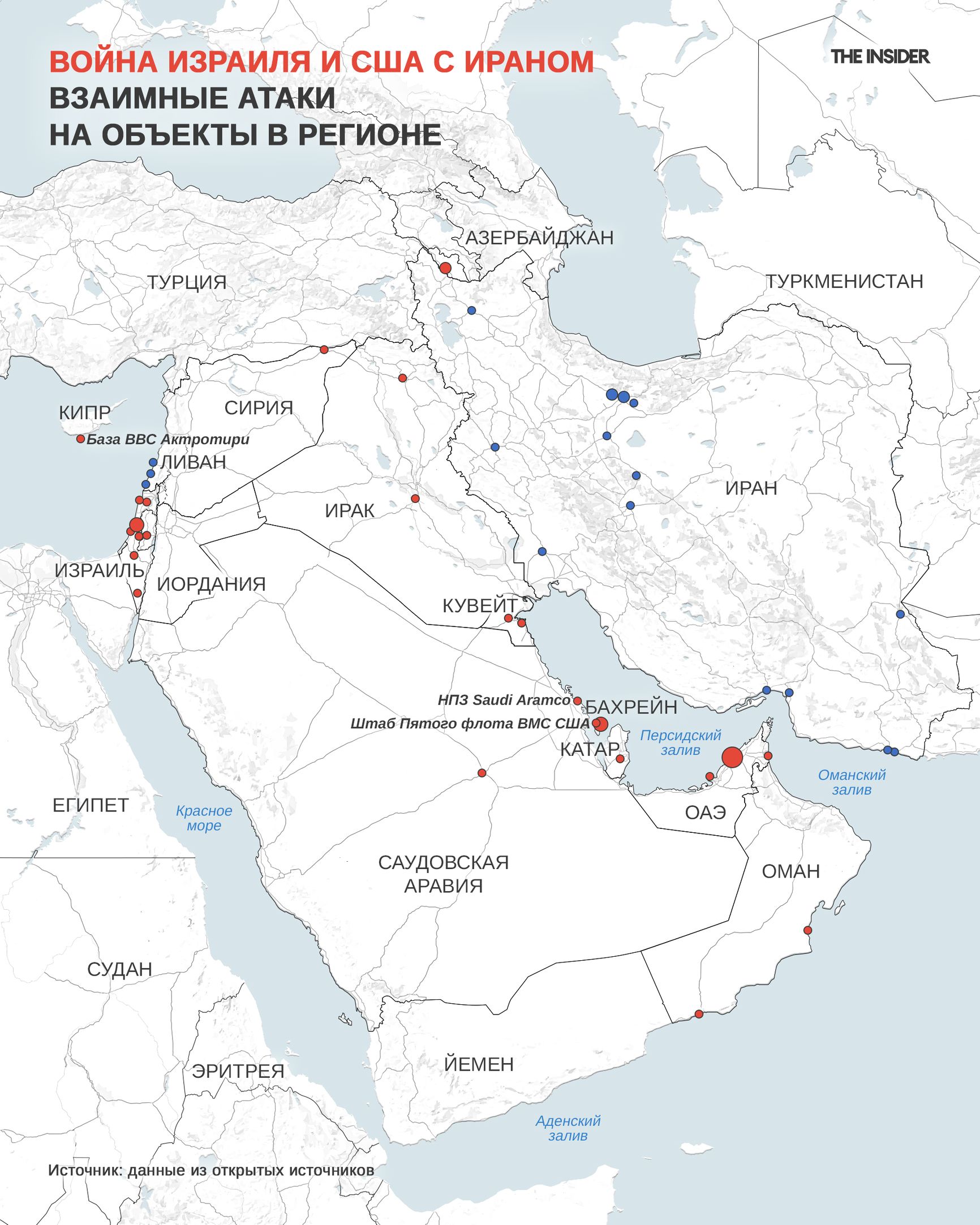 Карта ударов Ирана по гражданским судам с начала войны
