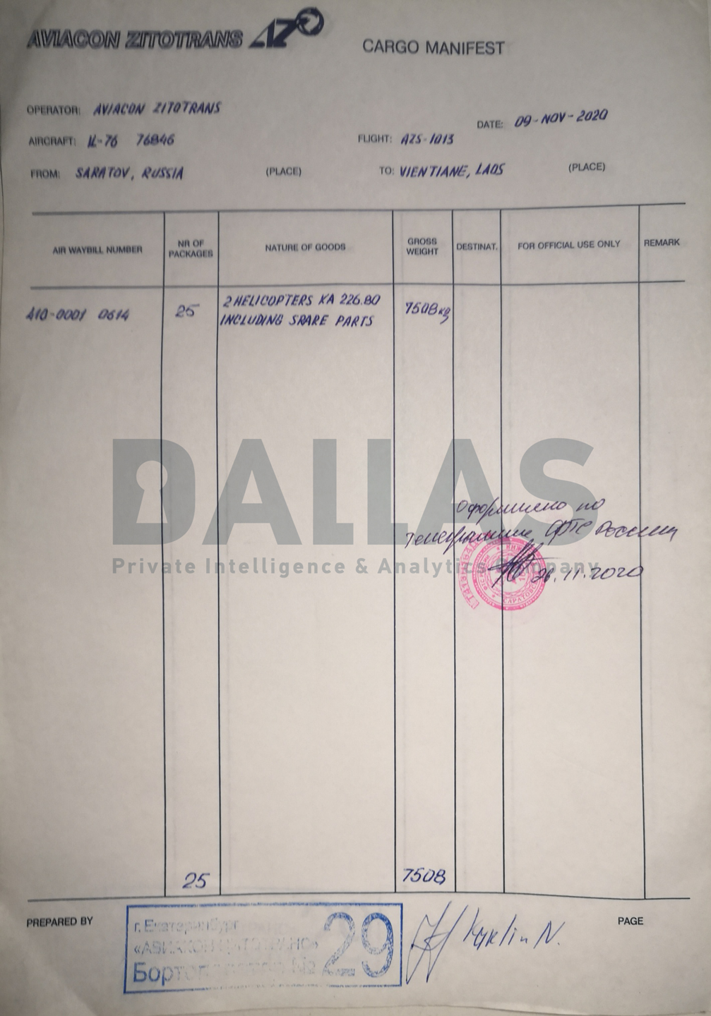 Однако государственные эскадрильи — это лишь часть более широкой теневой логистической сети, обнаружили расследователи. Они опубликовали документы, которые, как утверждается, доказывают использование частных гражданских авиакомпаний в военных целях. В частности, в 2023 году «Авиакон Цитотранс» перевозил «опасный груз» в Сирию, в 2022-м — ракетные системы и боеголовки в Индию, а в 2020-м — российские военные вертолеты в Лаос. Перевозчик также помогал транспортировать военные грузы из России в Китай от имени ключевых оборонных компаний РФ, а также доставлял электронное оборудование из Уганды для концерна «Алмаз-Антей».